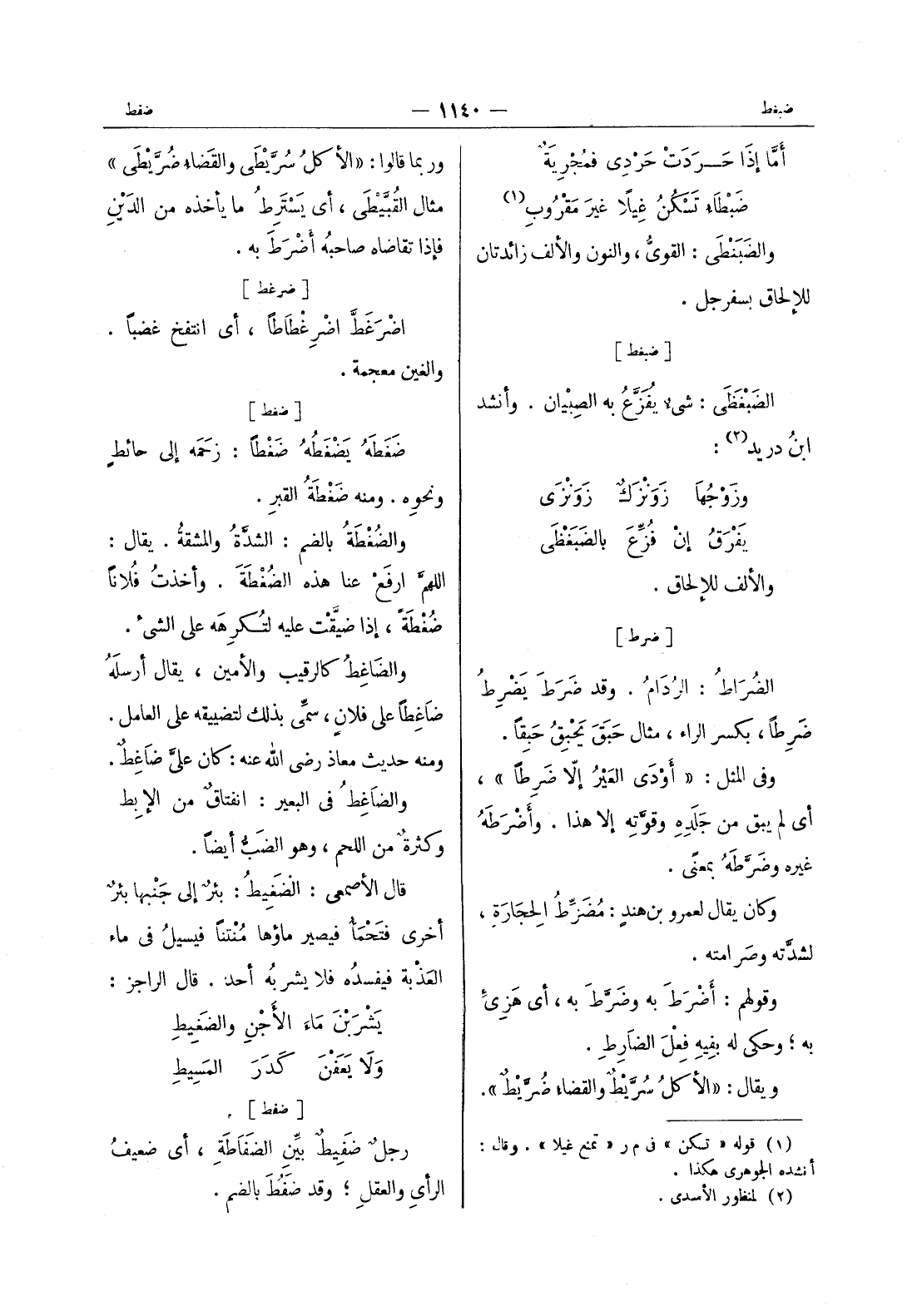 [ضفط] رجلٌ ضَفيطٌ بيِّن الضَفاطَةِ، أي ضعيفُ الرأي والعقلِ ; وقد ضفط بالضم.