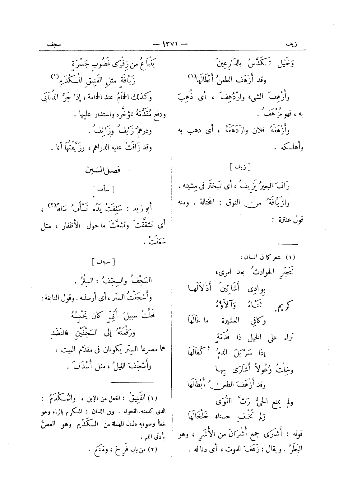 وخيل تكدس بالدار عين وقد أزهف الطعن أبطالها (¬1) وأزهف الشئ وازدهف، أي ذهب به فهو مزهف. وأزهفه فلان وازْدَهَفَهُ، أي ذهب به وأهلكه.