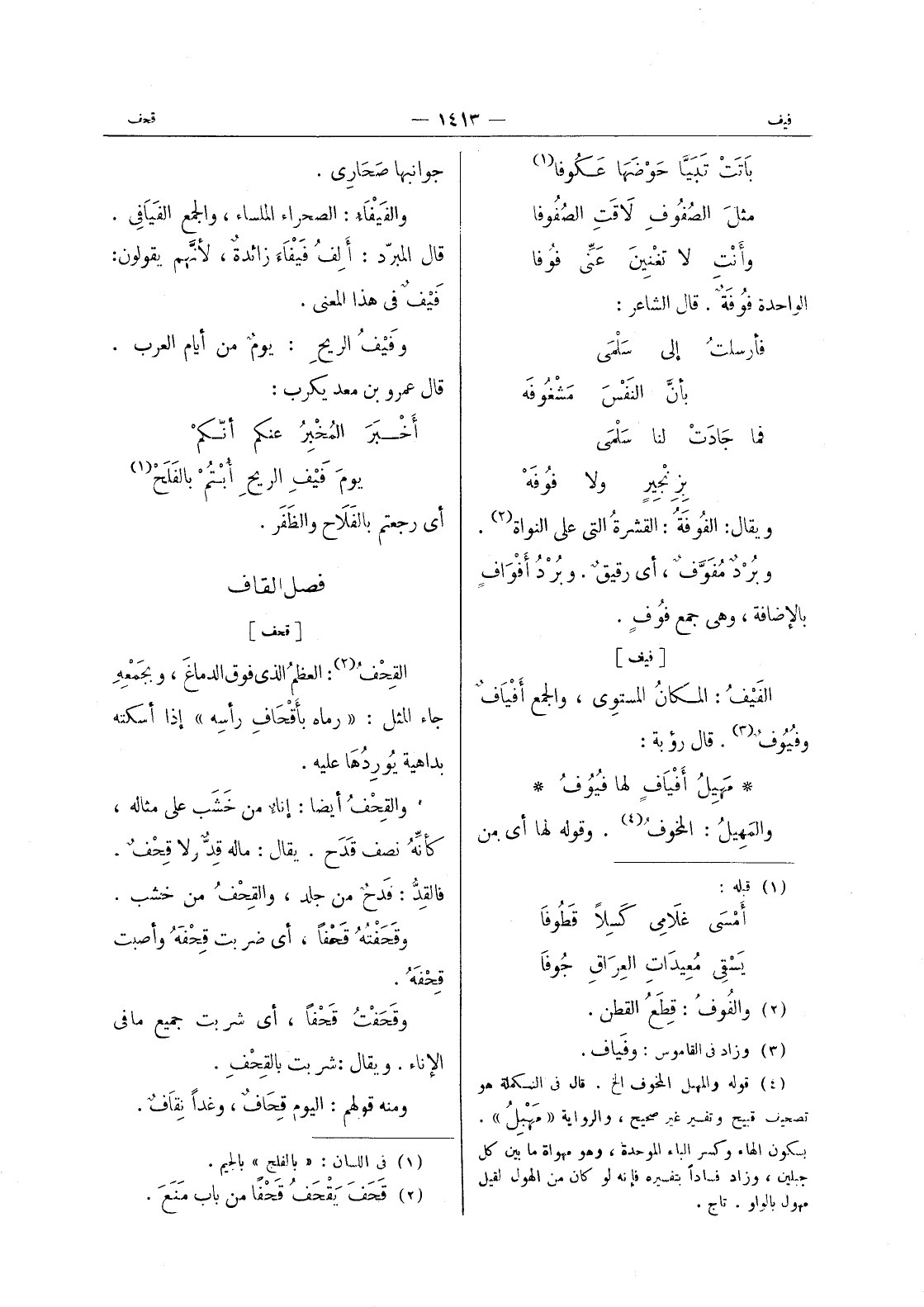 (¬3) وزاد في القاموس: وفياف.