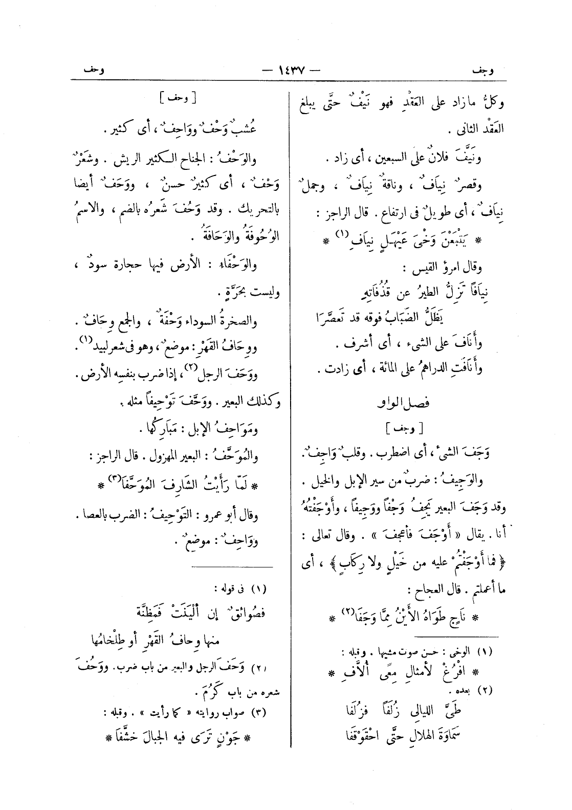 لما رأيت الشارف الموحفا (¬3) * وقال أبو عمرو: التوحيف: الضرب بالعصا. وواحف: موضع.