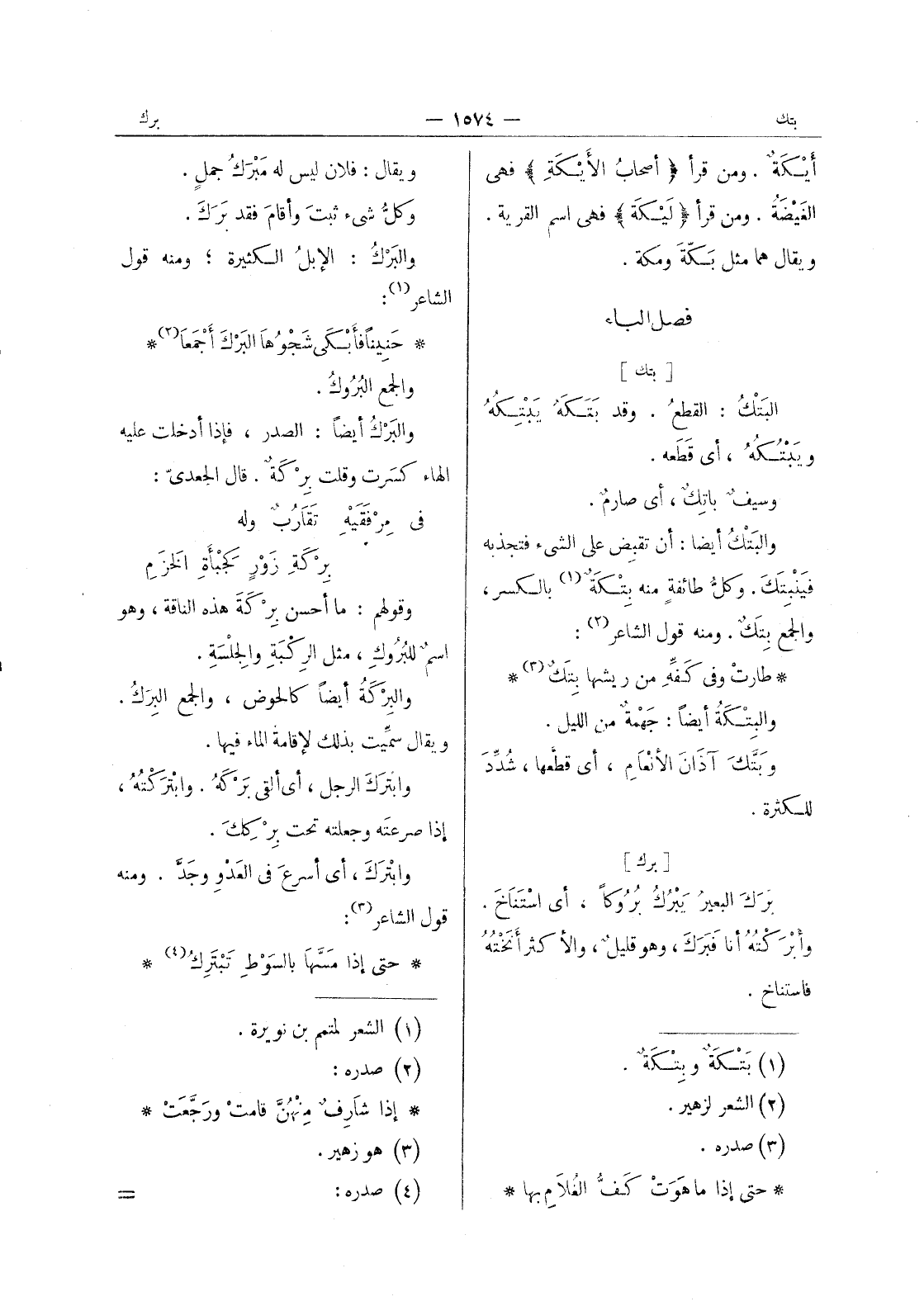 طارتْ وفي كَفِّهِ من ريشها بِتَكٌ (¬3) * والبِتْكَةُ أيضاً: جَهْمةٌ من الليل. وبَتَّكَ آذانَ الأنْعامِ، أي قطعها، شدد للكثرة.