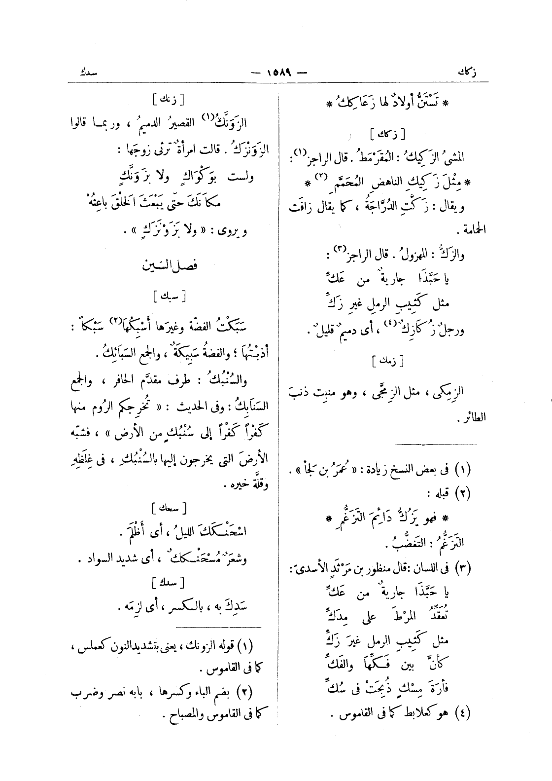 (¬1) قوله الزونك، يعنى بتشديد النون كعملس، كما في القاموس.