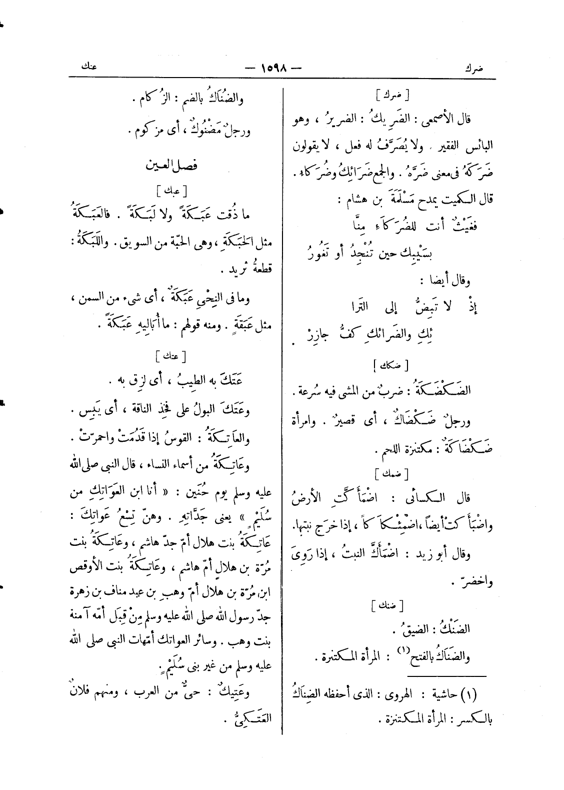 (¬1) حاشية: الهروي: الذى أحفظه الضناك بالكسر: المرأة المكتنزة.