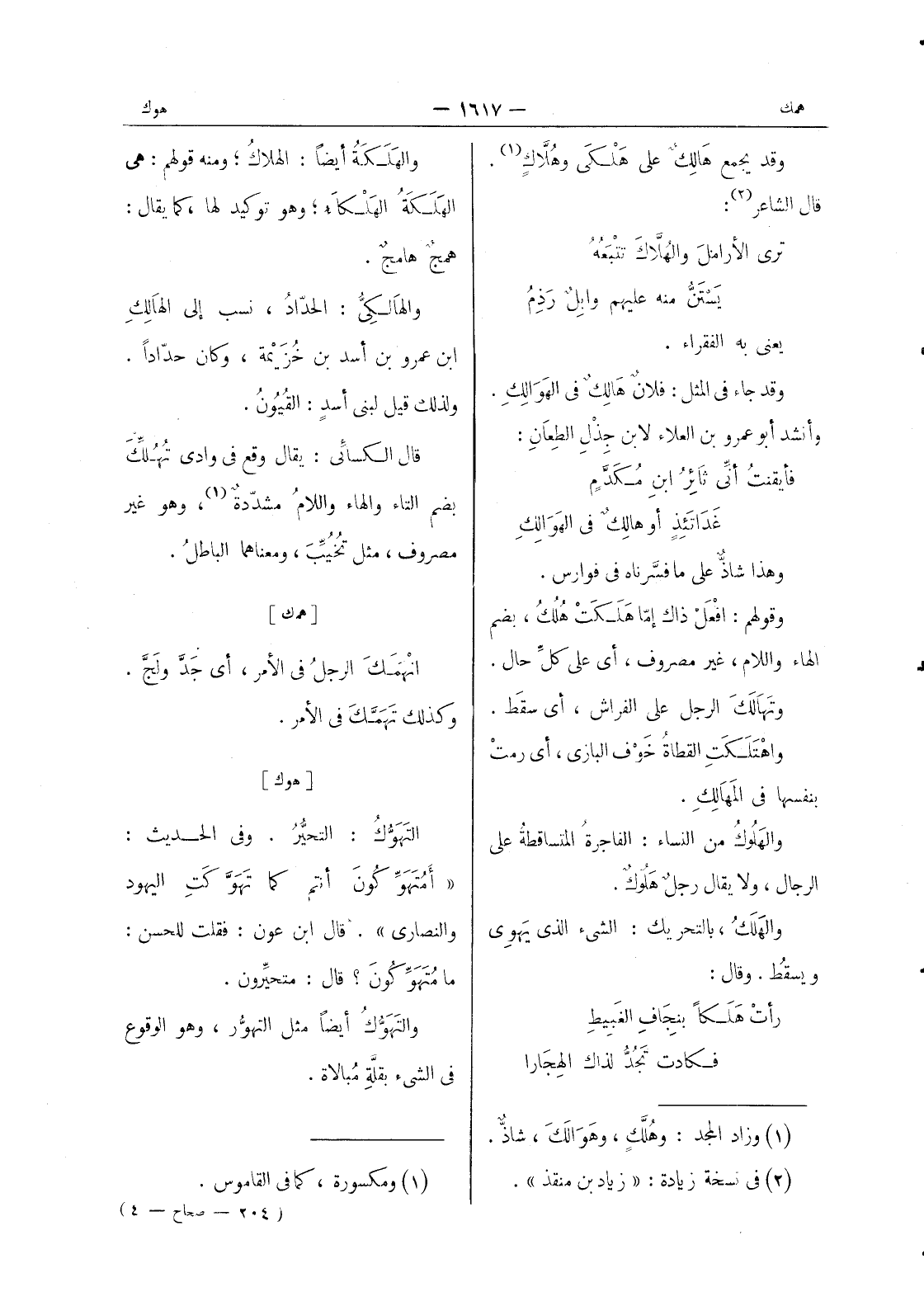 (¬1) وزاد المجد: وهلك، وهوالك، شاذ.