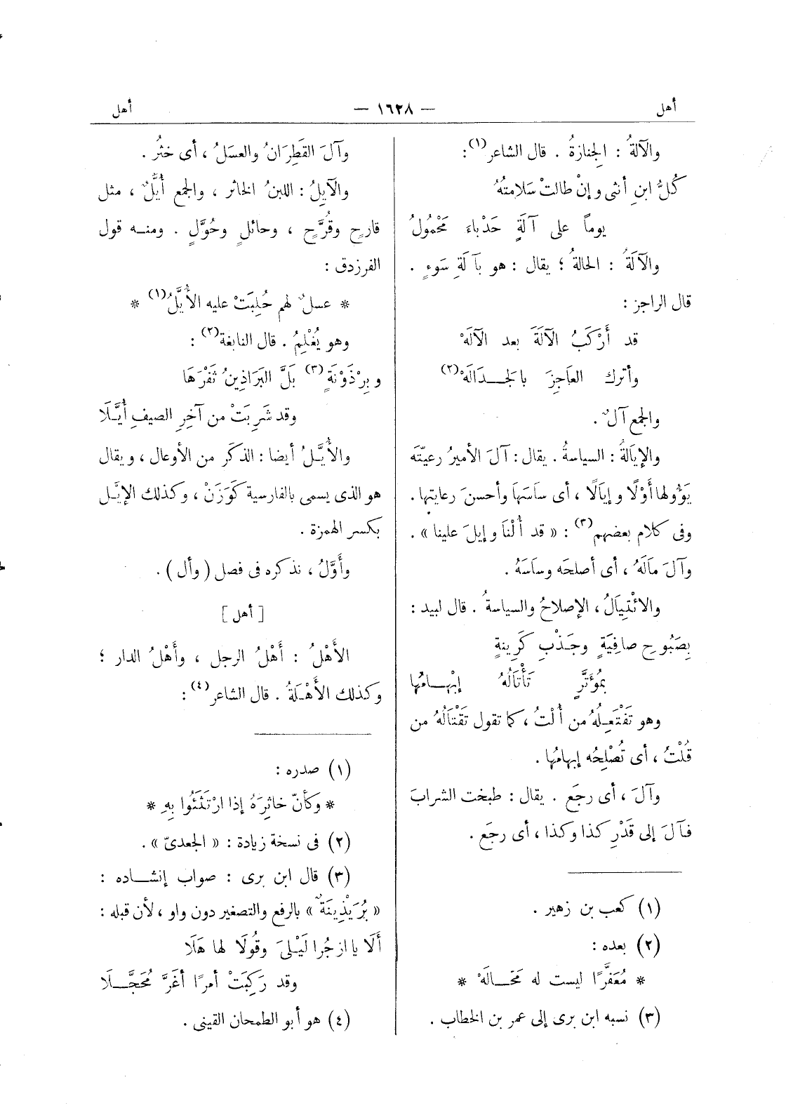 [أهل] الاهل: أهل الرجال، وأهل الدار، وكذلك الأَهْلَةُ. قال الشاعر (¬4)