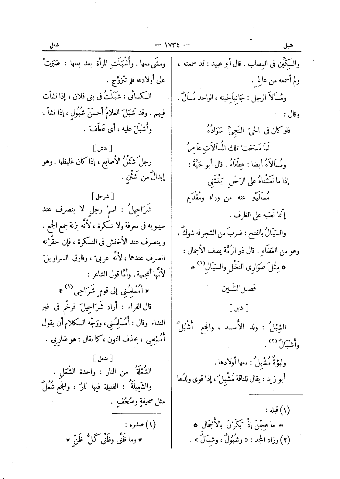 (¬2) وزاد المجد: " وشبول، وشبال ".