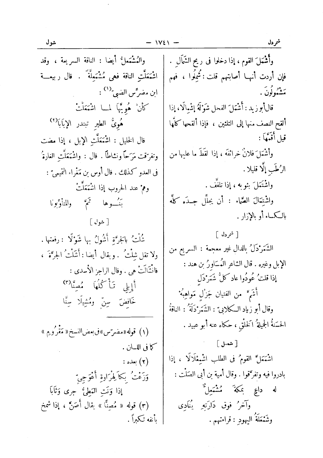 [شعمل] اشمعل القوم في الطلب اشْمِعْلالاً، إذا بادروا فيه وتفرَّقوا. وقال أمية بن أبي الصَلْت: له داعٍ بمكةَ مُشْمَعِلٌّ وآخرُ فوق دارَتِهِ يُنادي وشَمْعَلَةُ اليهودِ: قراءتهم.