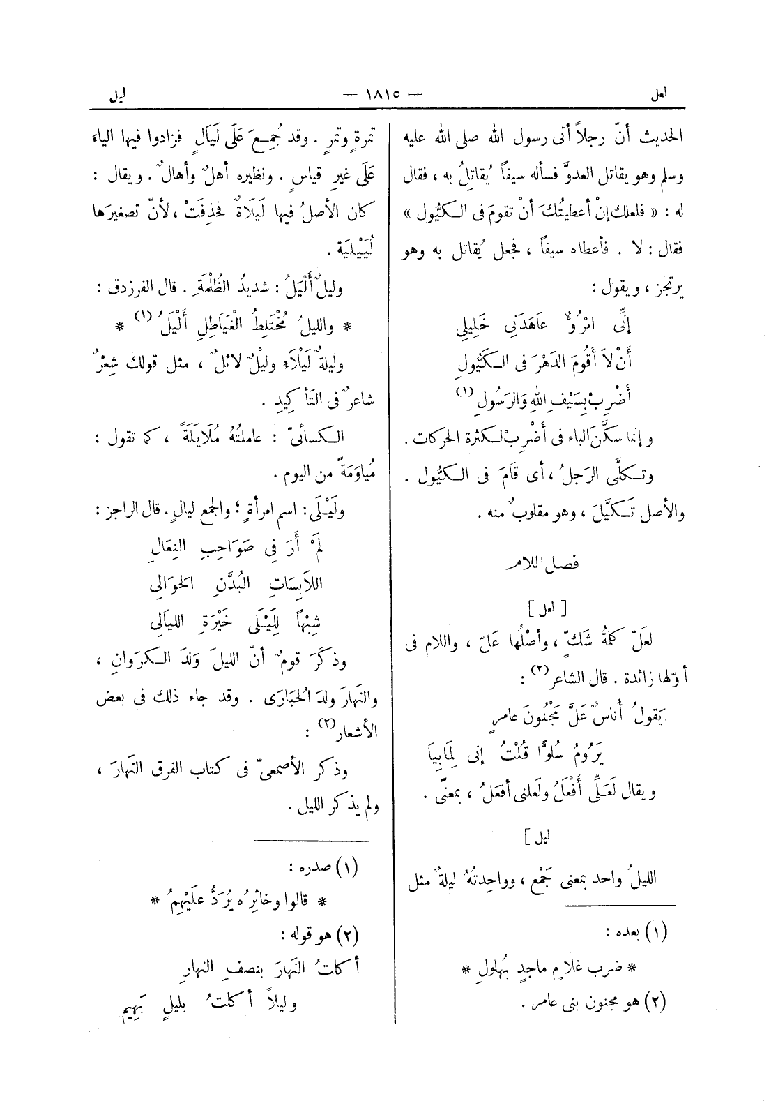 (¬2) هو قوله: أكلت النهار بنصف النهار وليلا أكلت بليل بهيم