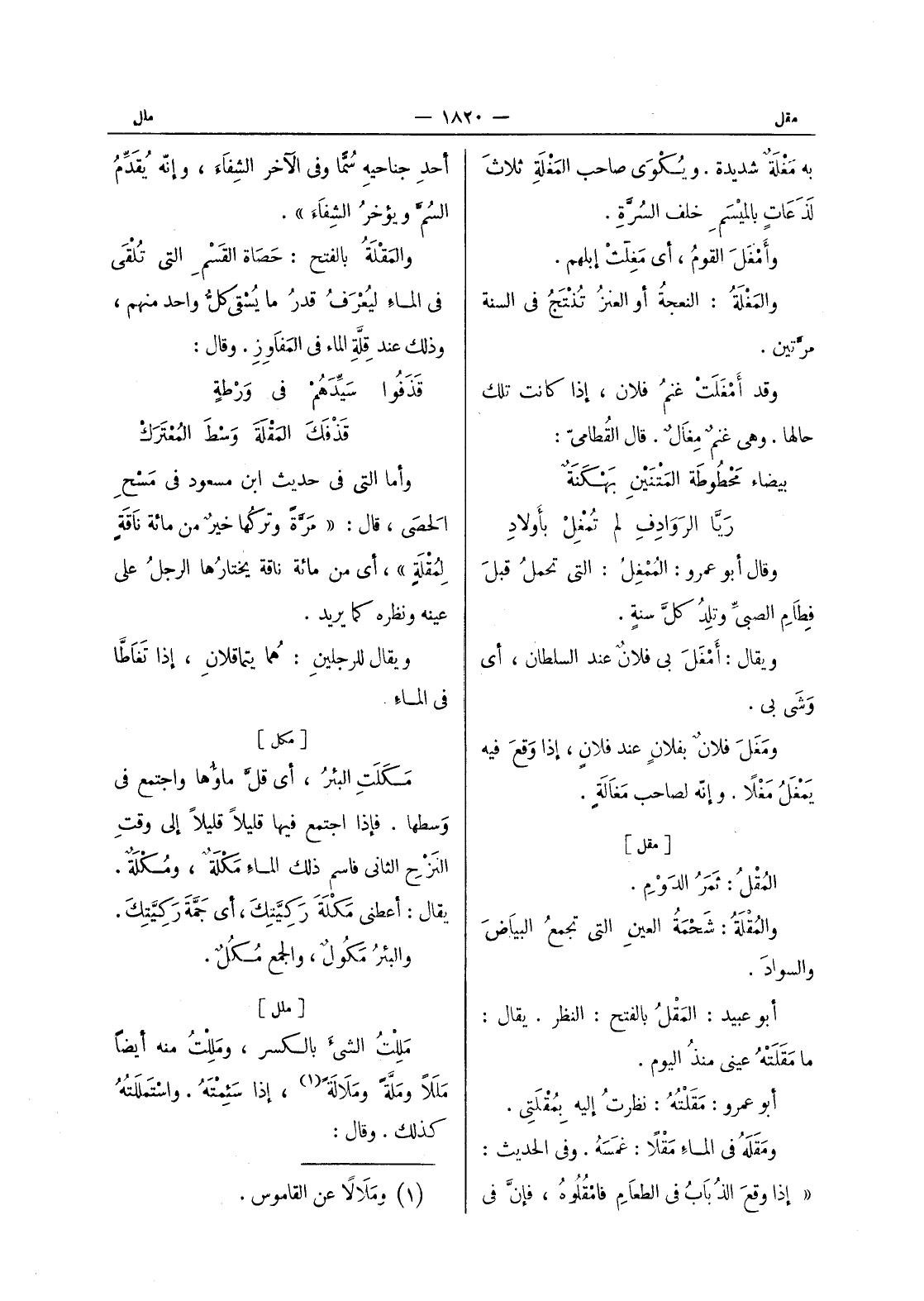 (¬1) وملالا عن القاموس.