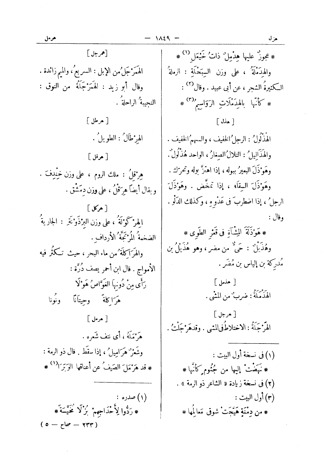 ردوا لاحداجهم بزلا مخيسة * (233 - صحاح - 5)