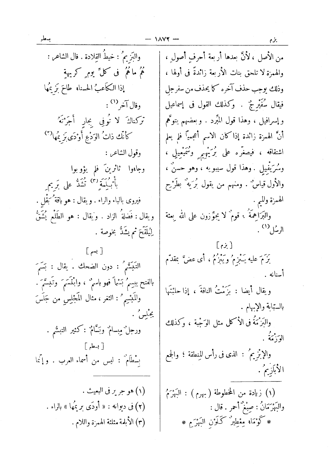 (¬1) زيادة من المخطوطة (بهرم) : البهرم والبهرمان: صبغ أحمر. قال: