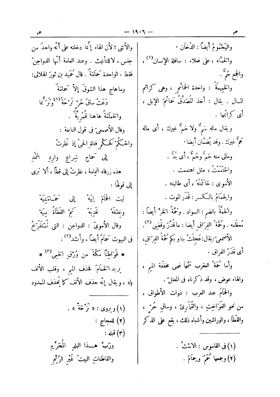 (¬2) وجمعها حمم وحمام.