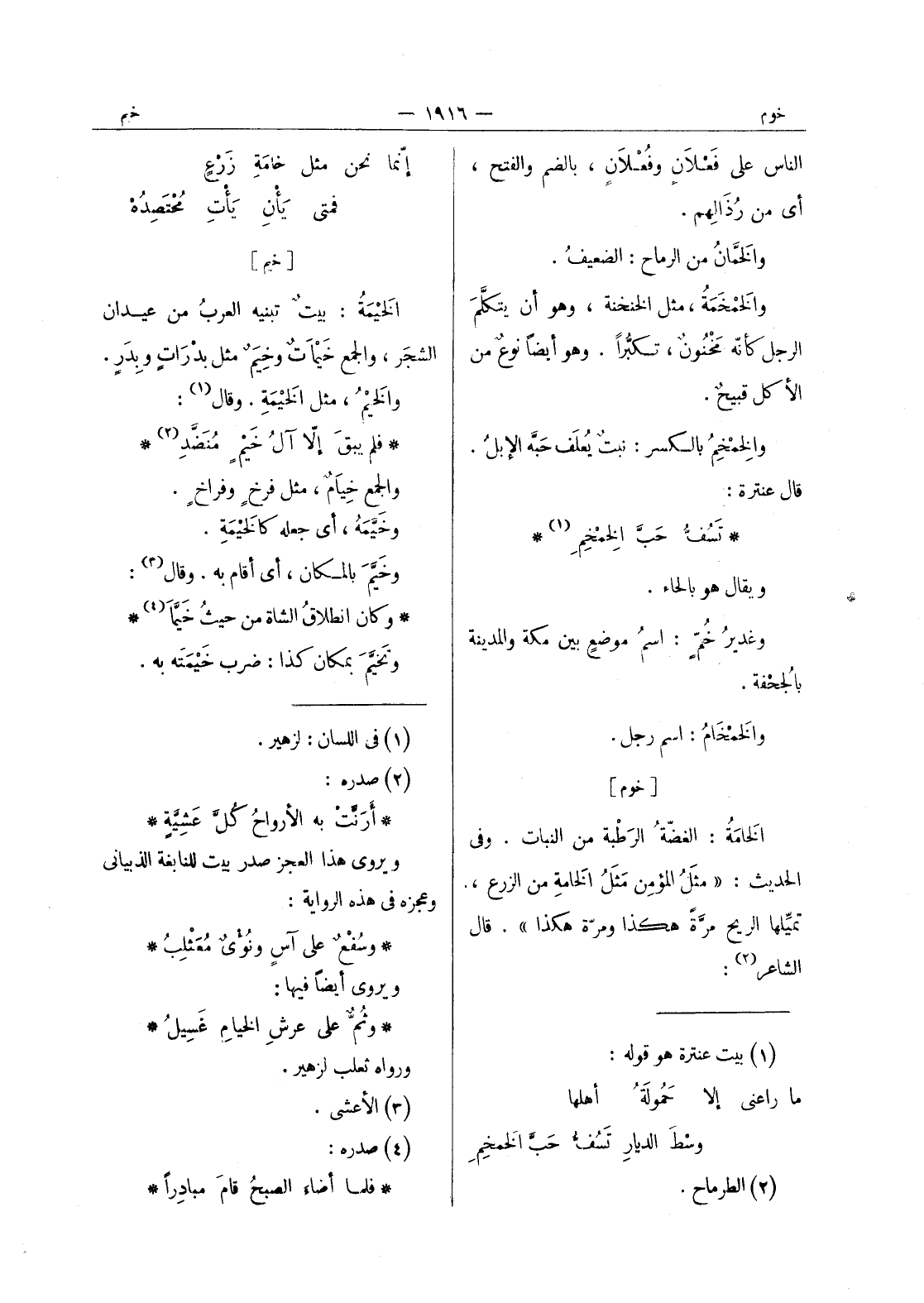 (¬1) بيت عنترة هو قوله: ما راعني إلا حمولة أهلها وسط الديار تسف حب الخمخم.