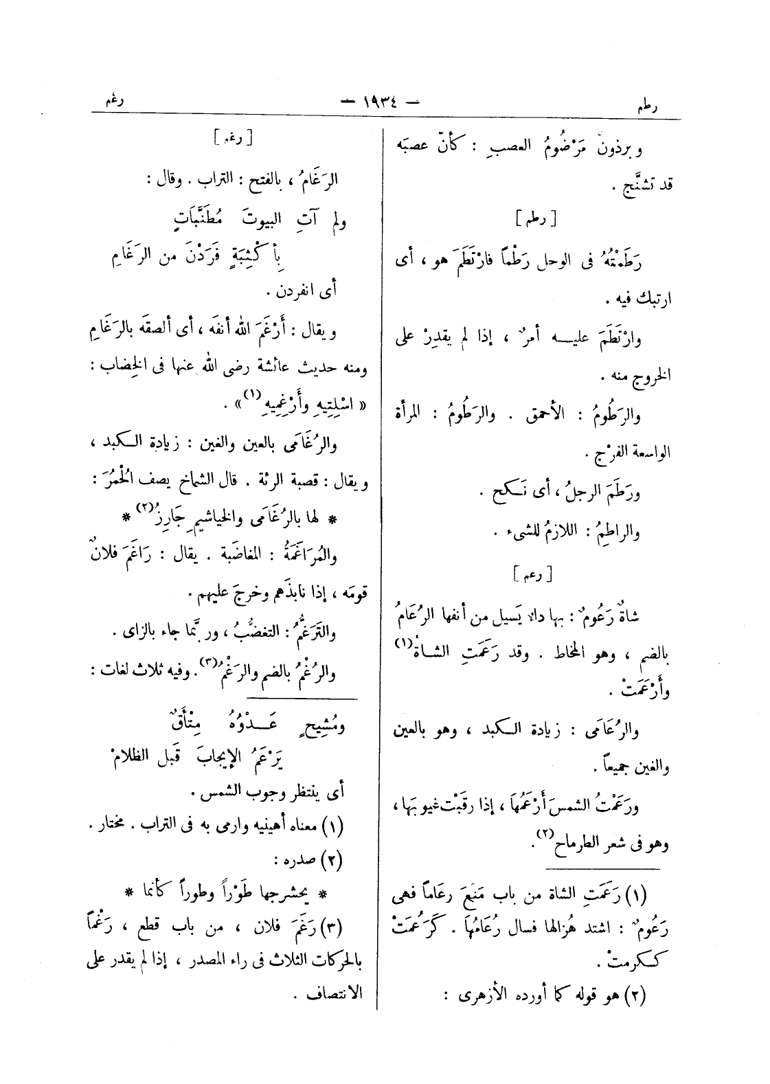 (¬1) رعمت الشاة من باب منع رعاما فهى رعوم: اشتد هزالها فسال رعامها. كرعمت ككرمت.