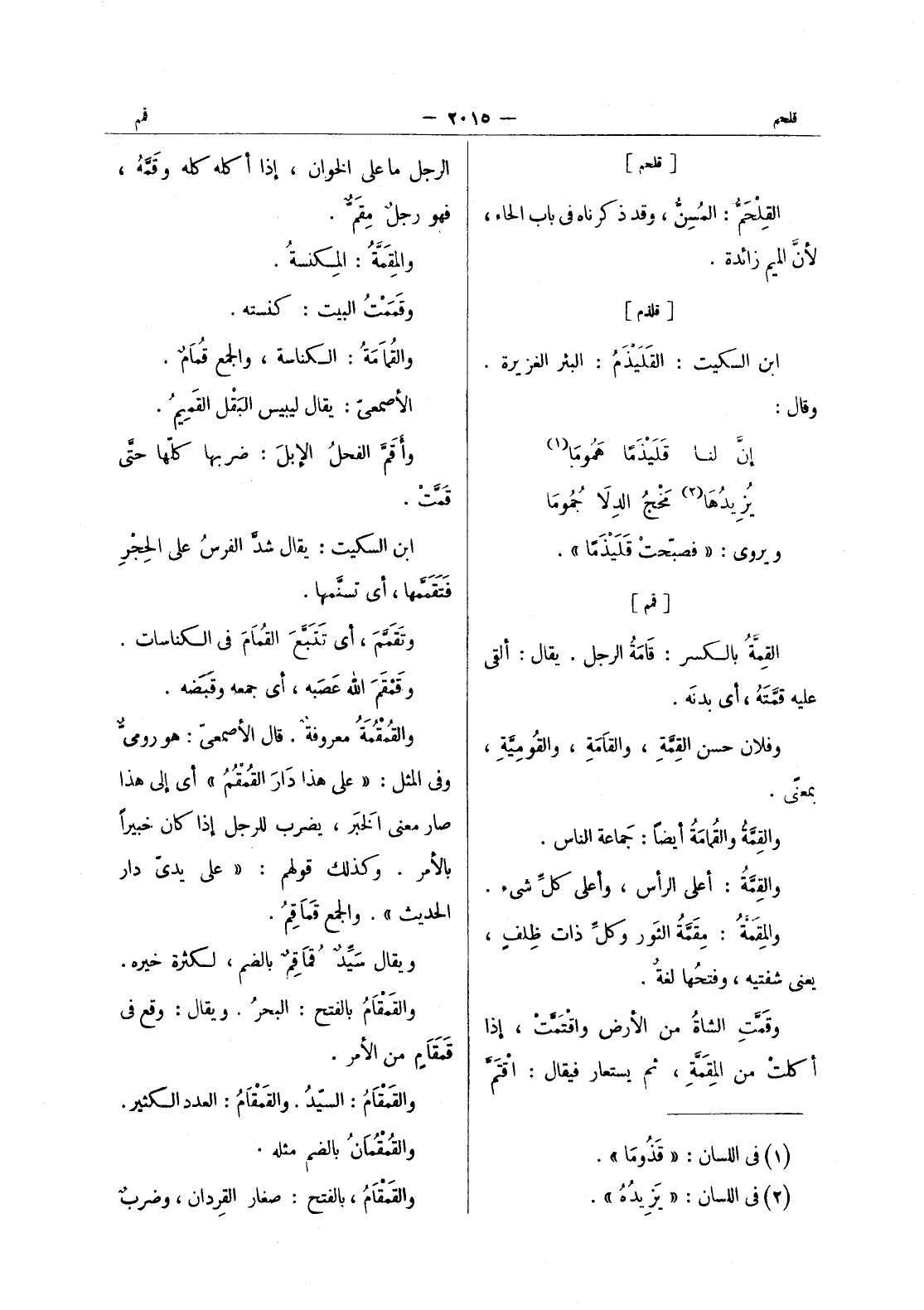 [قلحم] القلحم: المسن، وقد ذكرناه في باب الحاء، لان الميم زائدة.