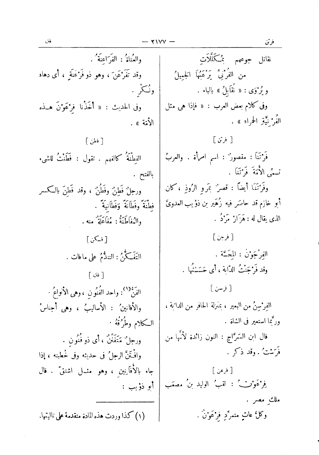 [فرعن] فرعون: لقب الوليد بن مصعب ملك مصر. وكل عات متمرد فرعون.