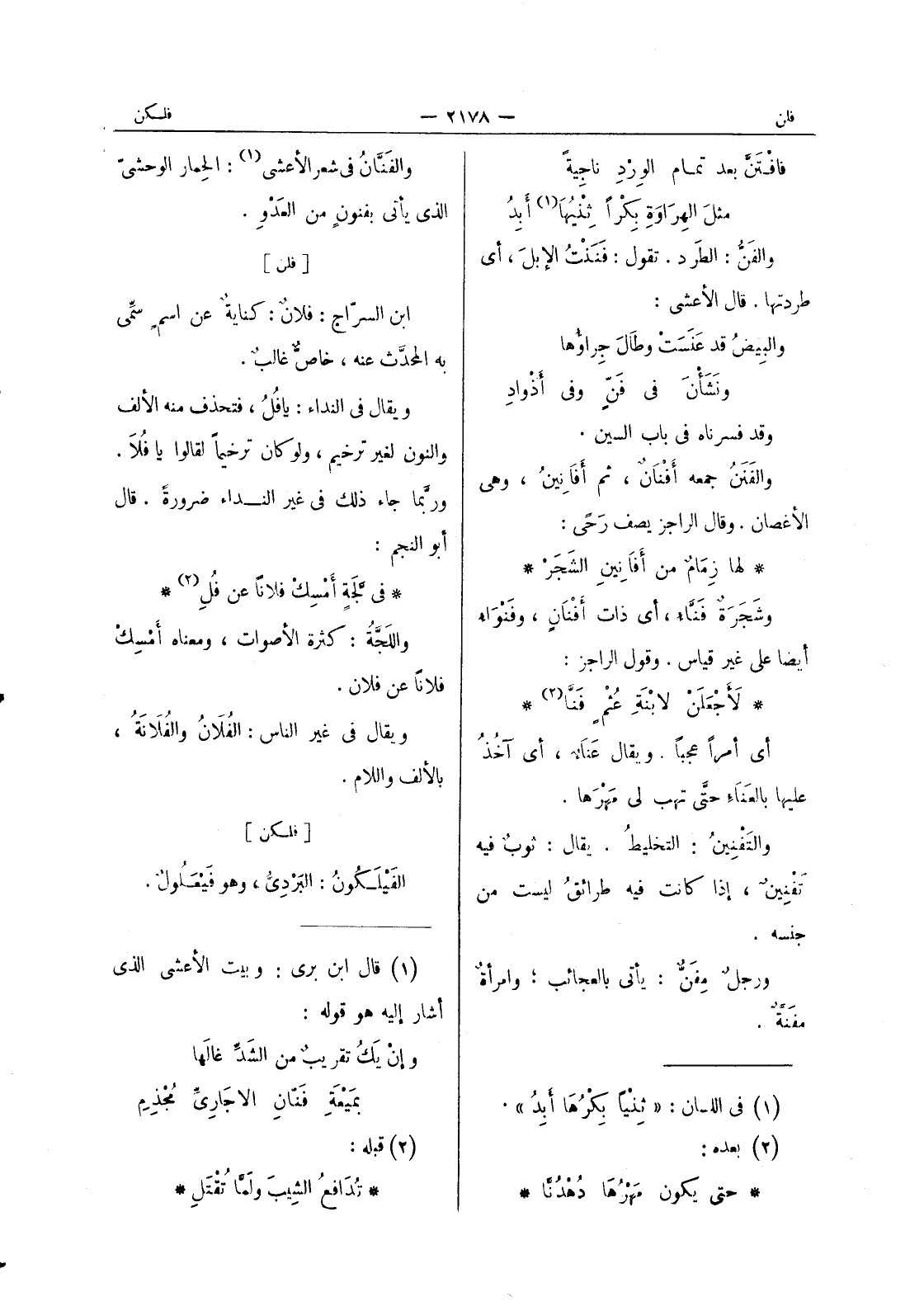 (*) والفنان في شعر الاعشى (¬1) : الحمار الوحشى الذى يأتي بفنون من العدو.