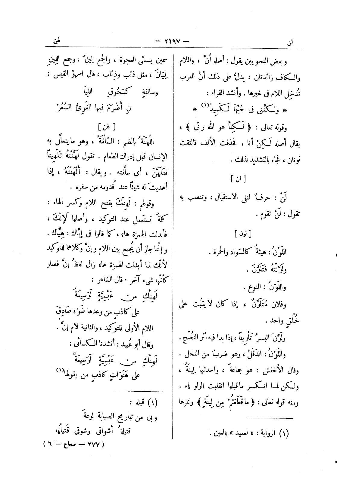 (*) سمين يسمى العجوة، والجمع لينٌ، وجمع اللين ليان، مثل ذئب وذئاب، قال امرؤ القيس: وسالفةٍ كَسحوقِ اللِيا * نِ أضْرَمَ فيها الغوى السعر