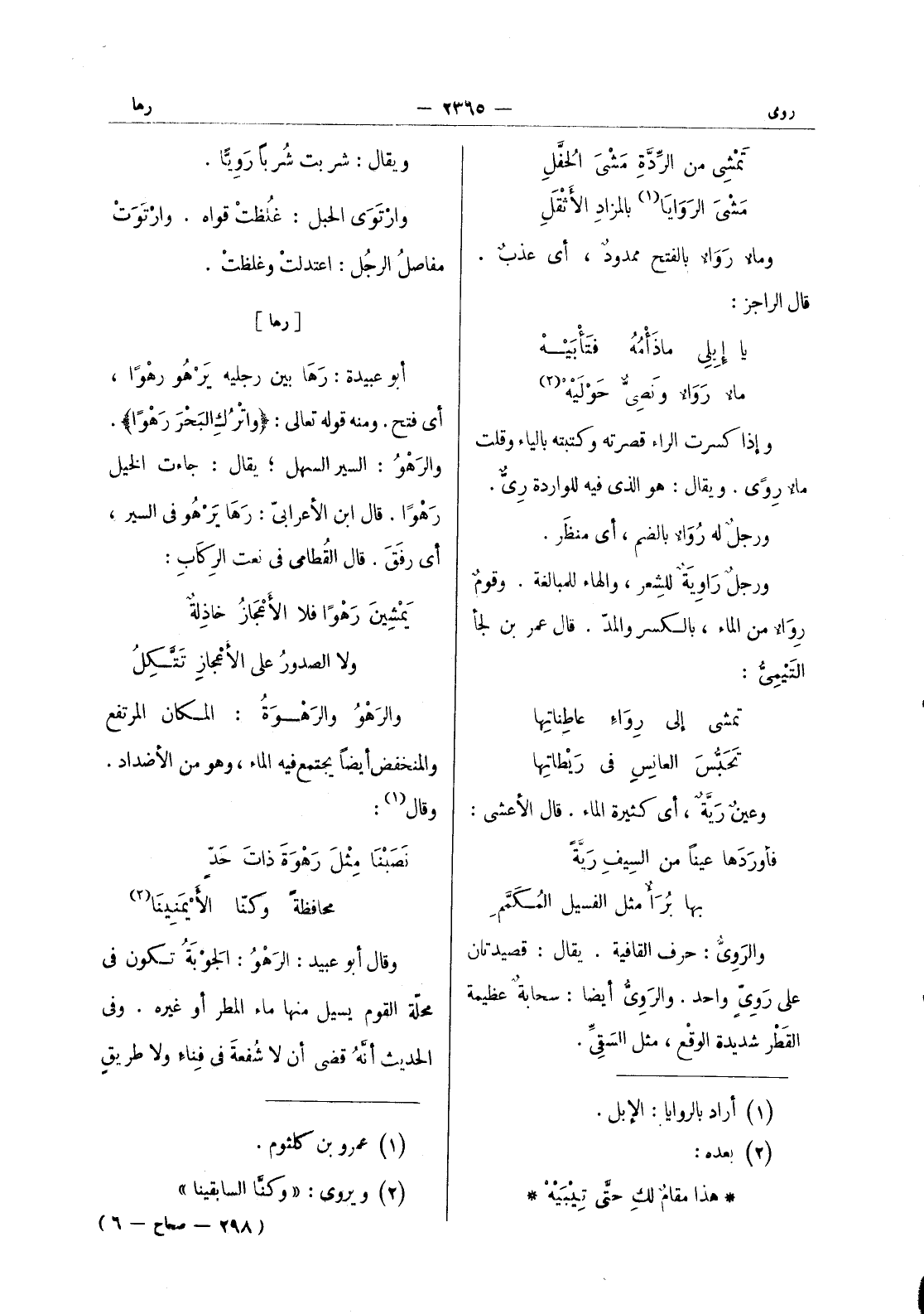 (*) ويقال: شربت شربا رويا. وارْتَوى الحبل: غلُظت قواه. وارْتَوَتْ مفاصل الرجل: اعتدلت وغلظت.