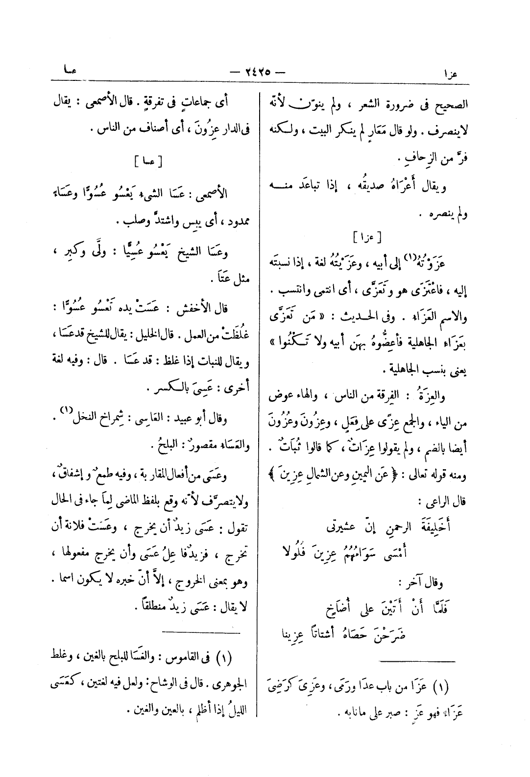 (¬1) عزا من باب عدا ورمى، وعزى كرضى عزاء فهو عز: صبر على ما نابه.
