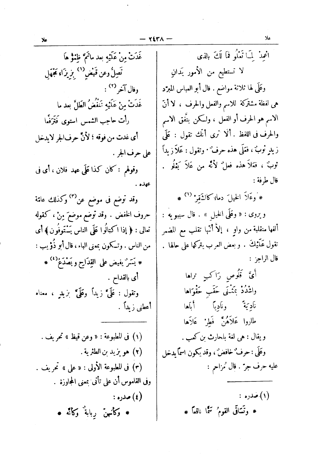 (¬3) في المطبوعة الاولى: " على " تحريف. وفى القاموس أن على تأتى بمعنى المجاوزة.