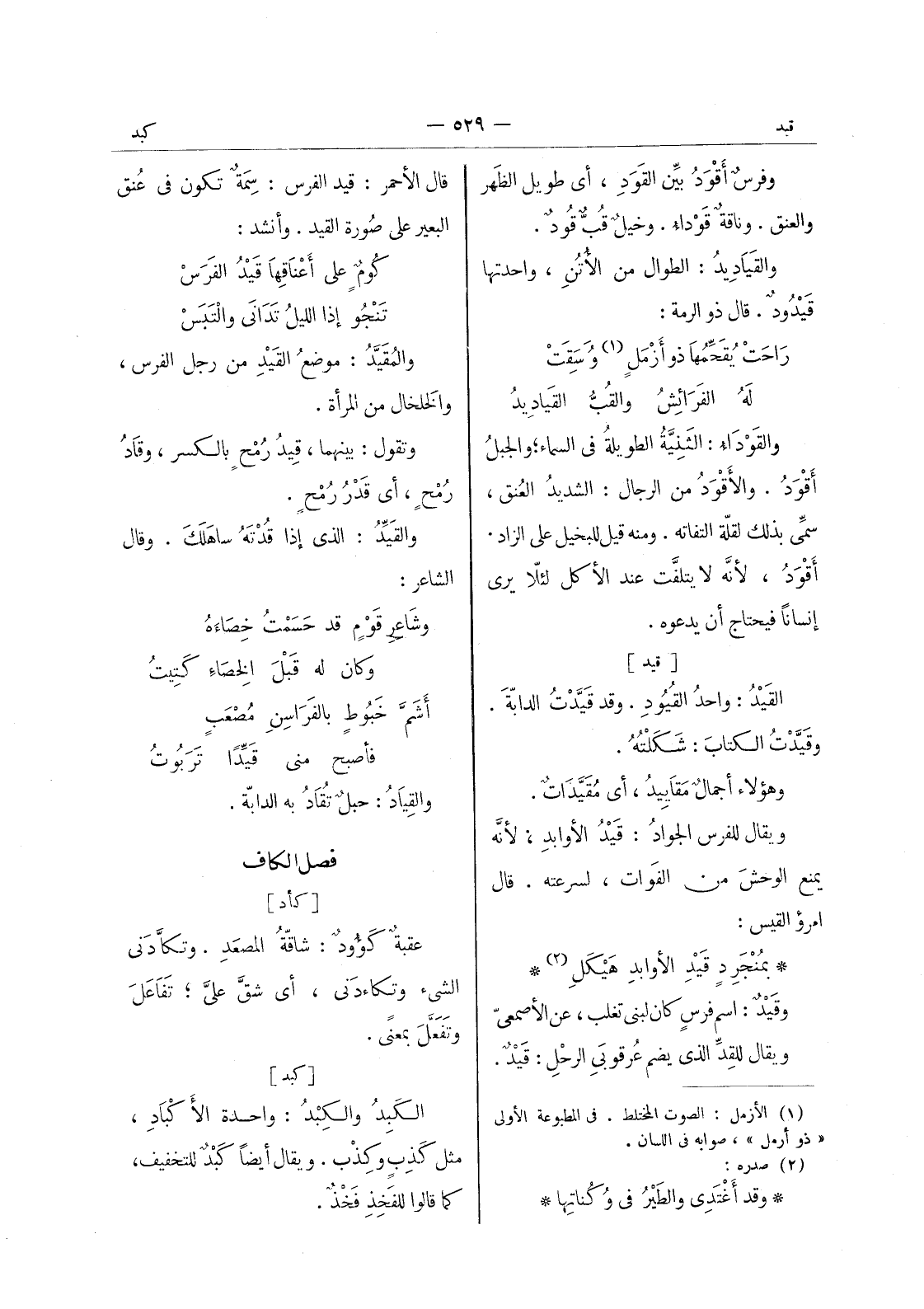 بمُنْجَرِدٍ قيد الاوابد هيكل (¬2) * وقيد: اسم فرس كان لبنى تغلب، عن الاصمعي ويقال للقد الذي يضم عُرقوبَي الرحْلِ: قَيْدٌ.