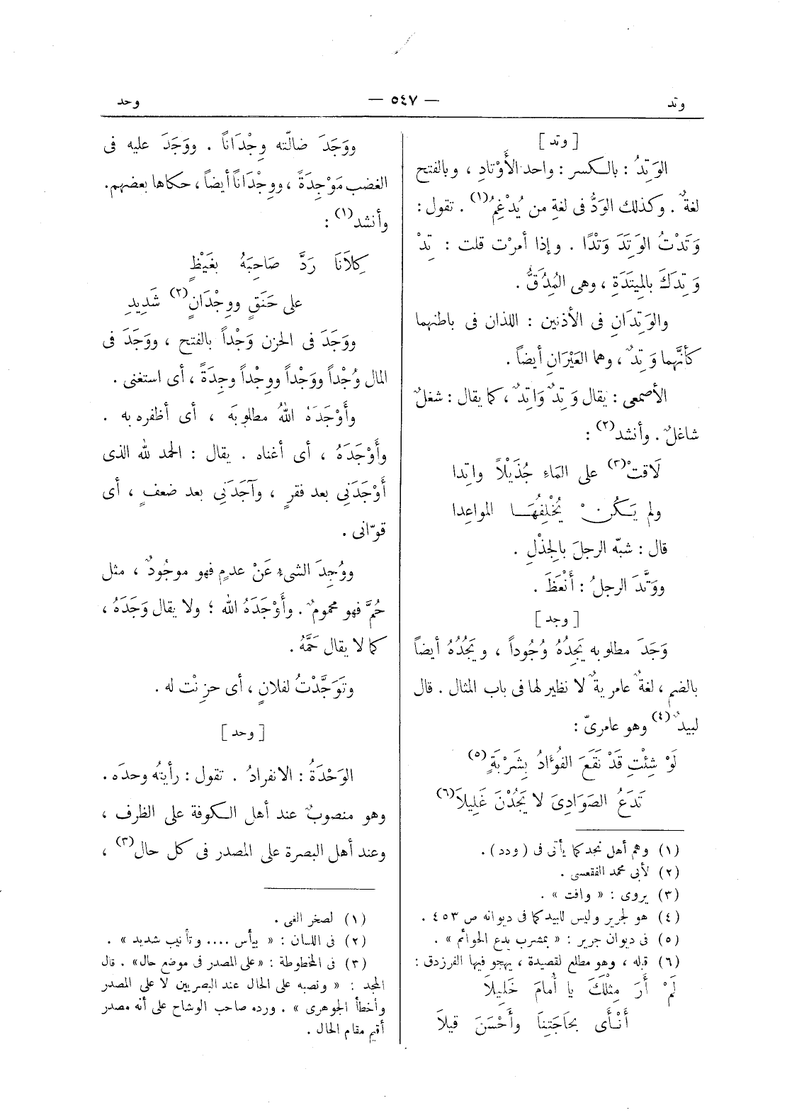 [وجد] وَجَدَ مطلوبه يَجِدُهُ وُجوداً، ويجده أيضا بالضم، لغة عامرية لا نظير لها في باب المثال. قال لبيد (¬4) وهو عامري: لو شئت قد نقع الفؤاد بشربة (¬5) * تدع الصوادى لا يجدن غليلا (¬6) -