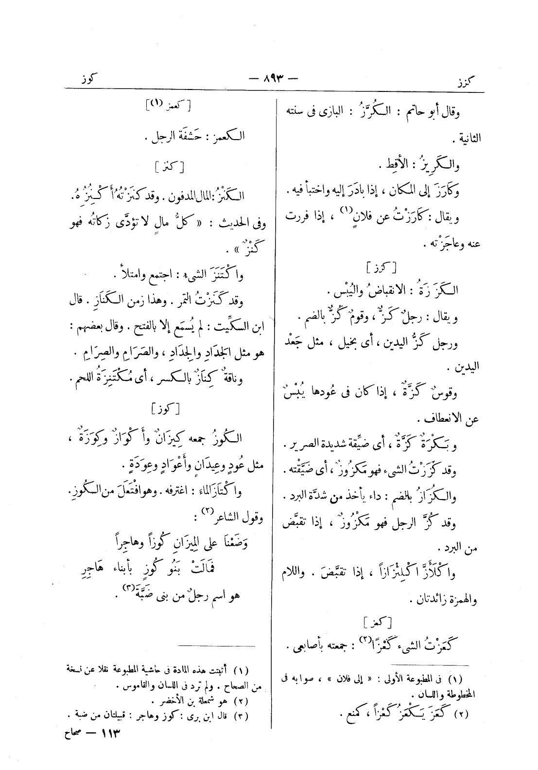 (¬3) قال ابن برى: كوز وهاجر: قبيلتان من ضبة. 113 - صحاح