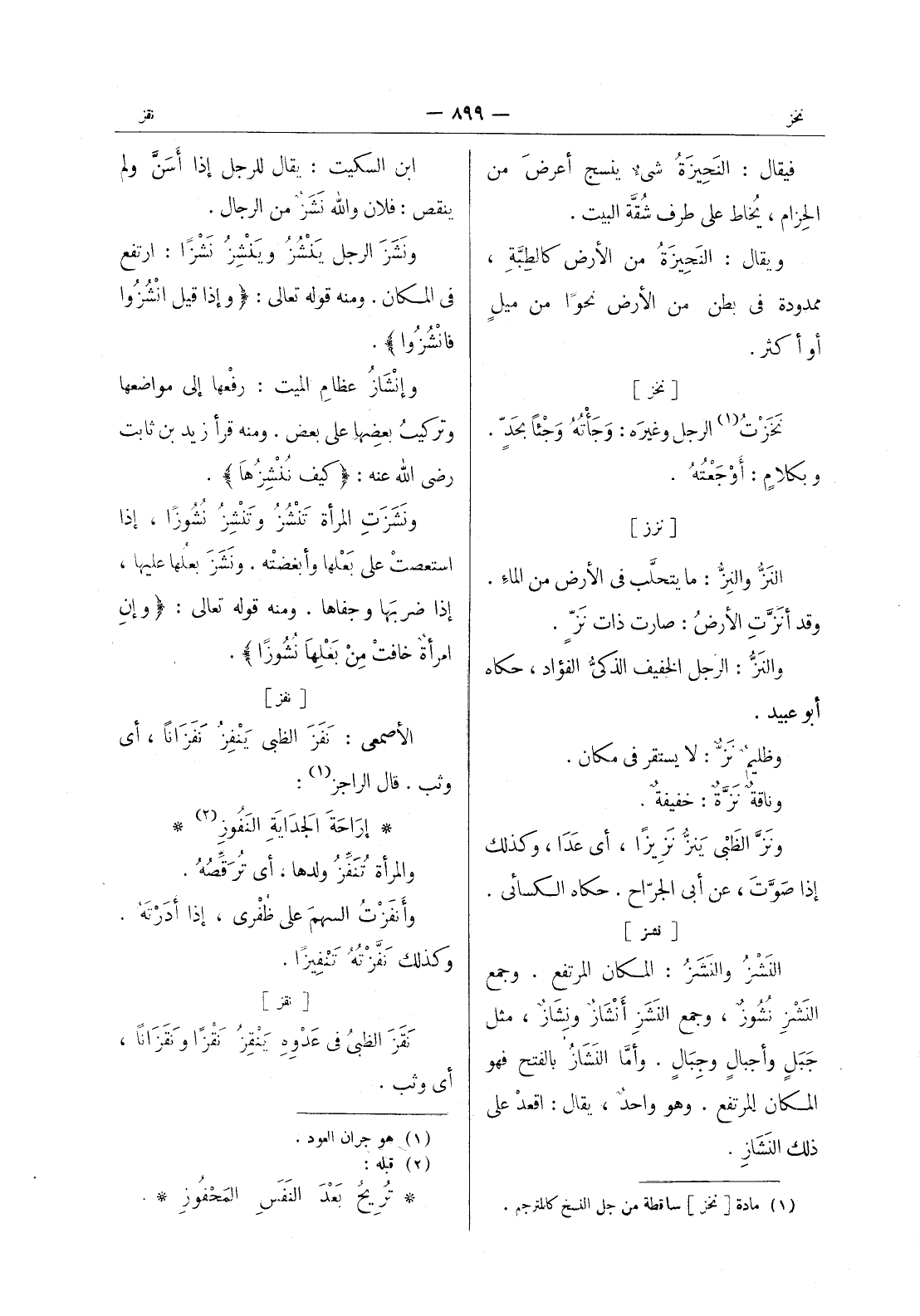[نفز] الاصمعي: نفز الظبى ينفز نفزانا، أي وثب. قال الراجز (¬1) :