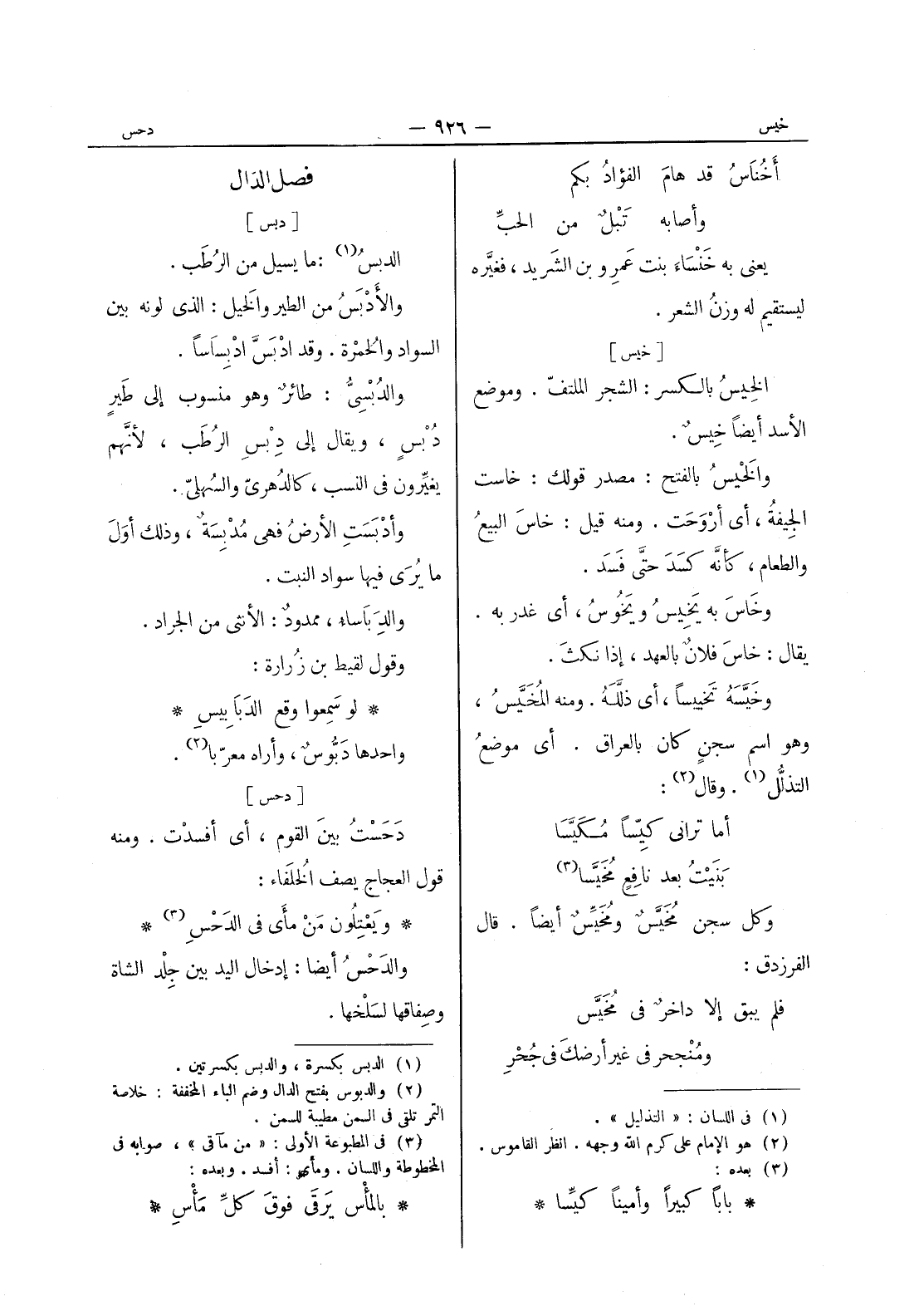 (¬2) والدبوس بفتح الدال وضم الباء المخففة: خلاصة التمر تلقى في السمن مطيبة للسمن.