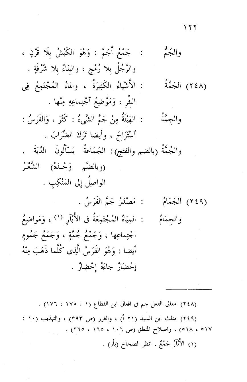 الْمِيَاه المجتمعة فِي الأبآر، ومواضع اجتماعها، وَجمع جمة، وَجمع جموم أَيْضا: