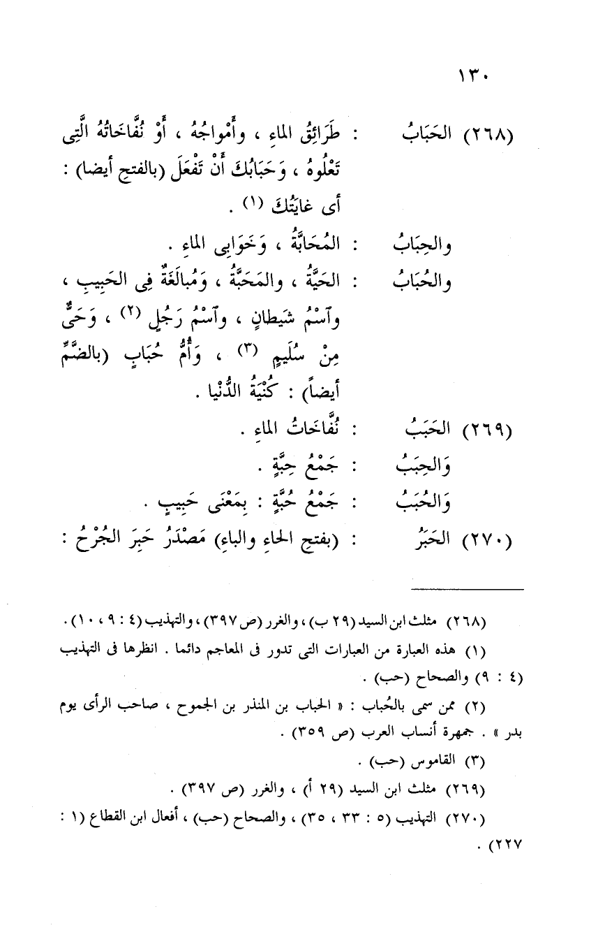 الْحَيَّة، والمحبة، ومبالغة فِي الحبيب، وَاسم شَيْطَان، وَاسم رجل، وَحي من سليم، وَأم حباب (بِالضَّمِّ أَيْضا) :