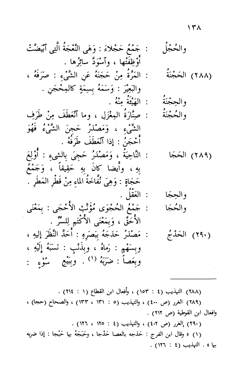 صنارة المغزل، وَمَا انعطف من طرف الشىء، ومصدر حجن الشىء فَهُوَ أحجن إِذا انعطف طرفَة (289) الحجا النَّاحِيَة ومصدرحجى بالشىء: