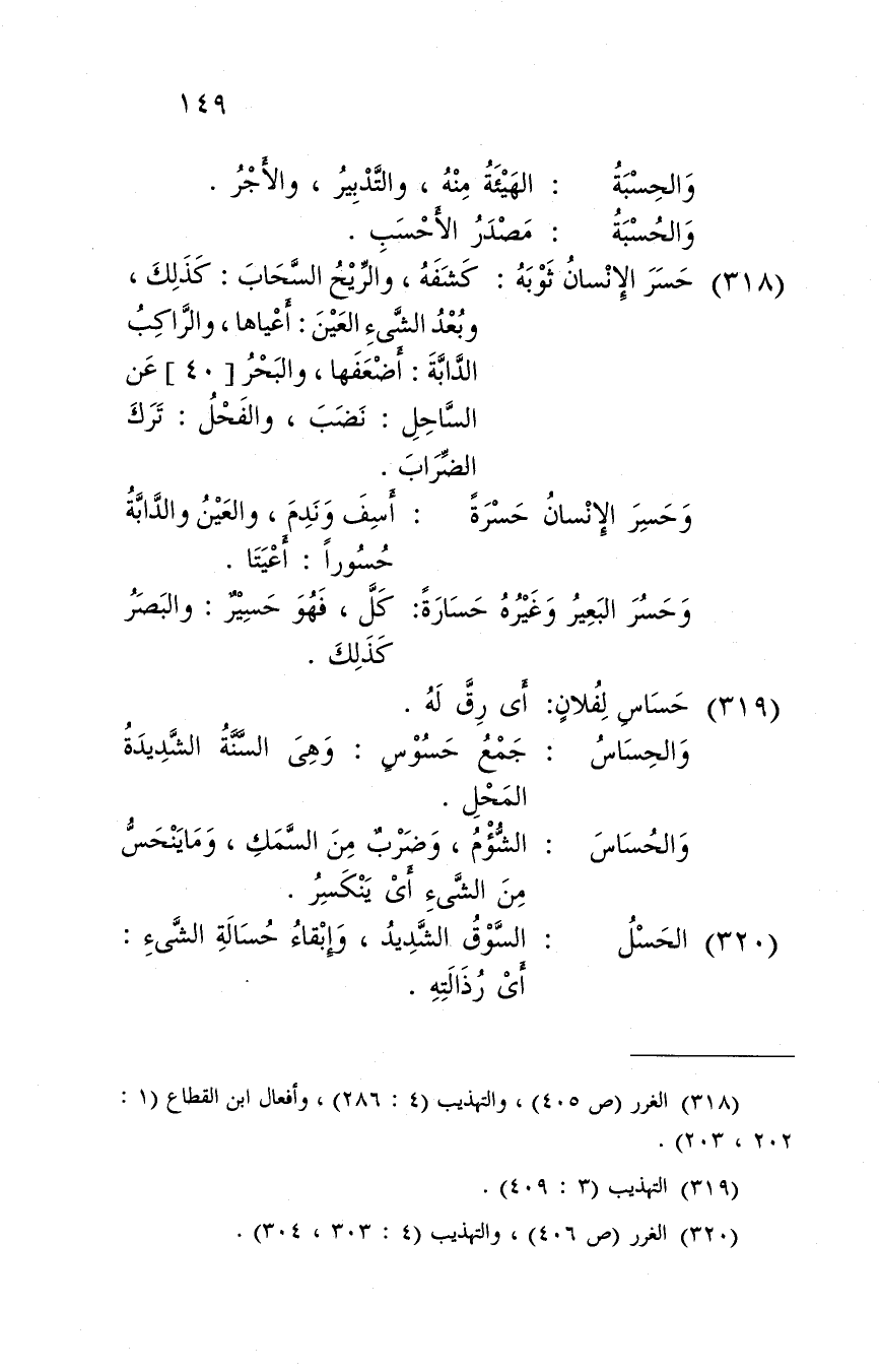 (320) الحسل: السُّوق الشَّديد، وإبقاء حسالة الشىء: