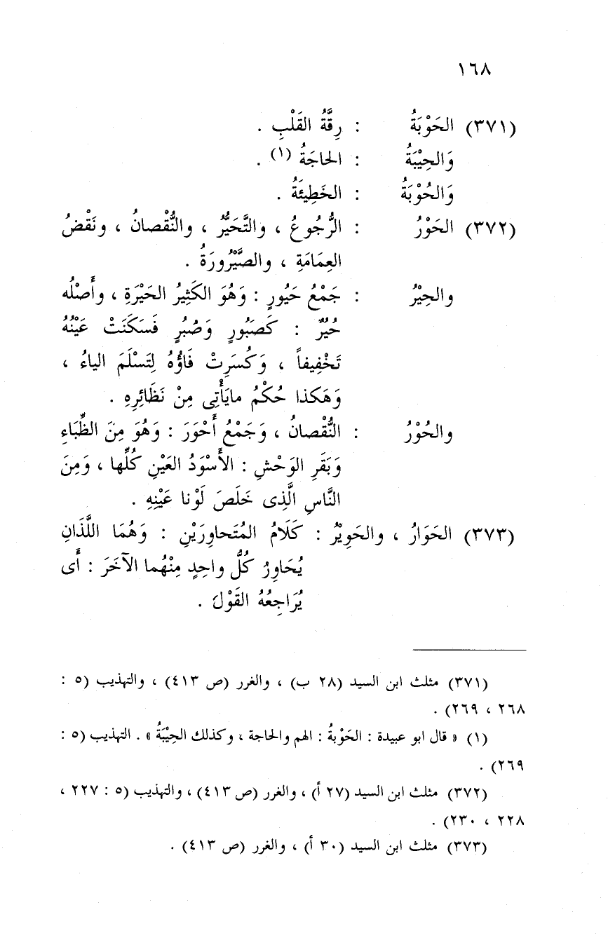 الرُّجُوع، والتحير، وَالنُّقْصَان، وَنقض الْعِمَامَة، والصيرورة.