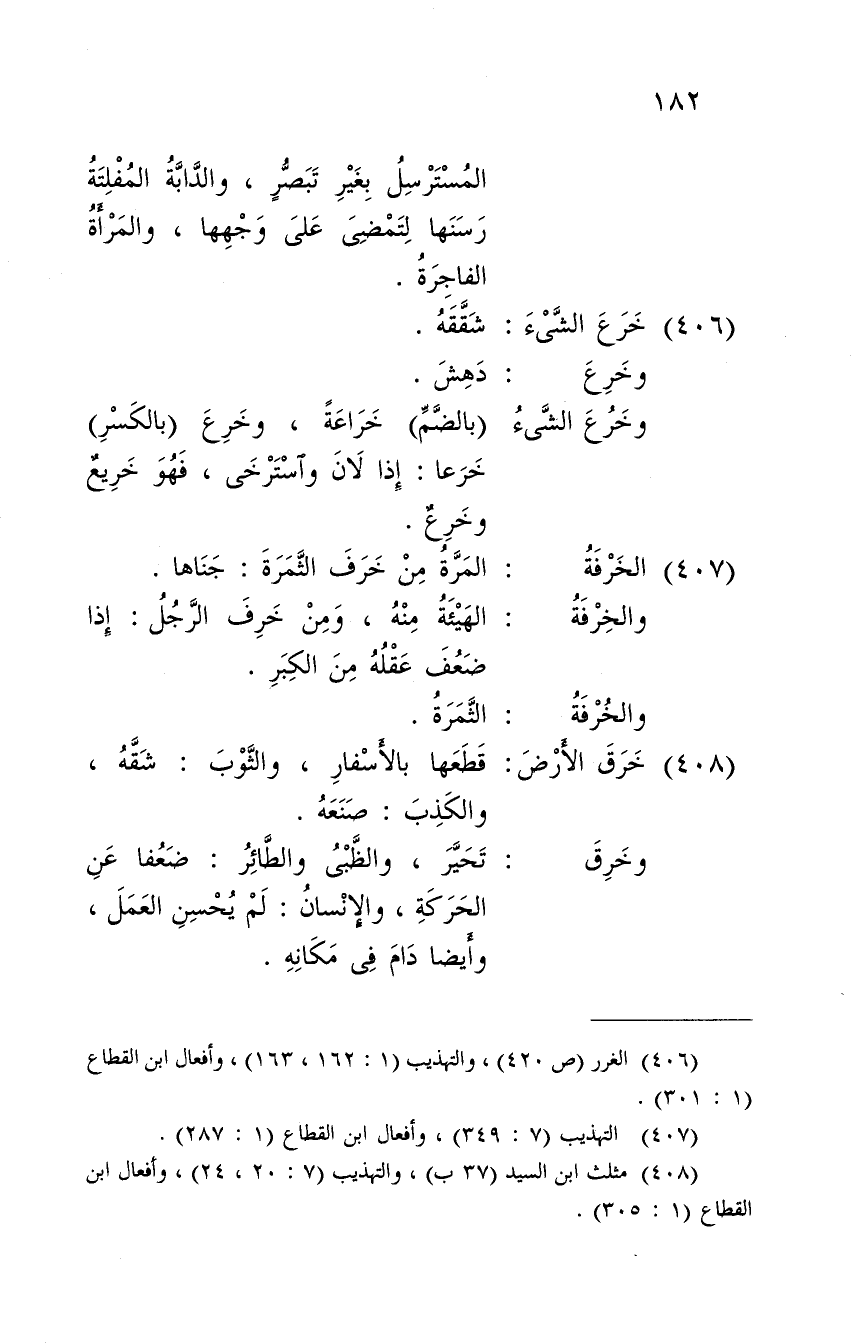المسترسل بِغَيْر تبصر، وَالدَّابَّة المفلتة رسنها لتمضى على وَجههَا، وَالْمَرْأَة الْفَاجِرَة.