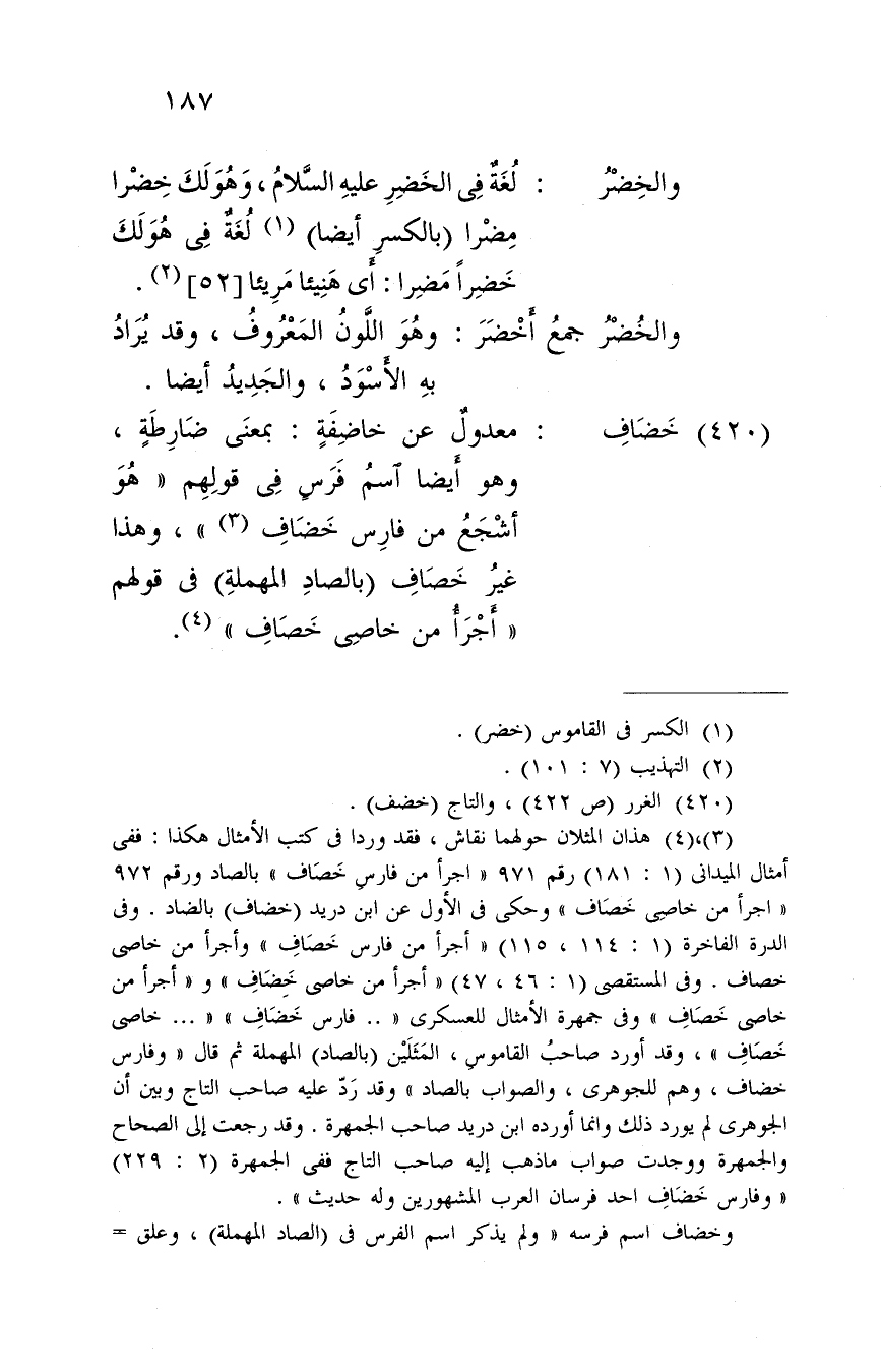 لُغَة فِي الْخضر عَلَيْهِ السَّلَام، وَهُوَ لَك خضرًا مضرا (بِالْكَسْرِ أَيْضا) لُغَة فِي هُوَ لَك خضرًا مضرا: