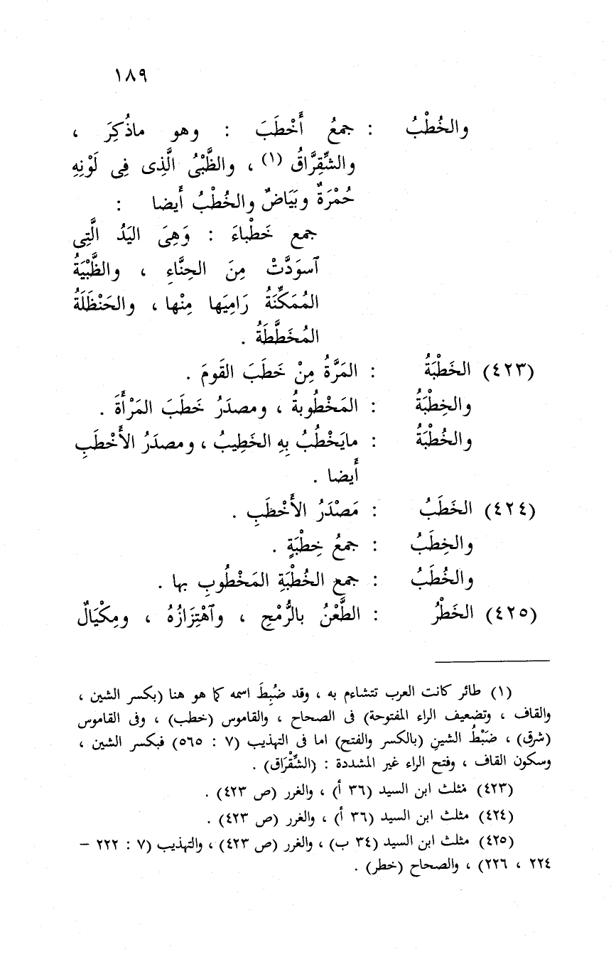 وَهُوَ مَا ذكر، والشقراق، والظبى الَّذِي فِي لَونه حمرَة وَبَيَاض والخطب أَيْضا: