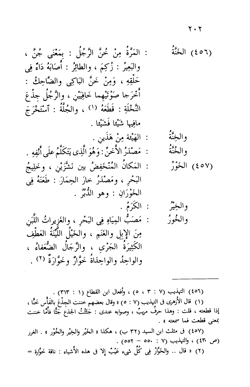 مصب الْمِيَاه فِي الْبَحْر، والغزيرات اللَّبن من الْإِبِل وَالْغنم، وَالْخَيْل اللينة الْعَطف الْكَثِيرَة الجرى، وَالرِّجَال الضُّعَفَاء، وَالْوَاحد والواحداة خوار وخوارة.