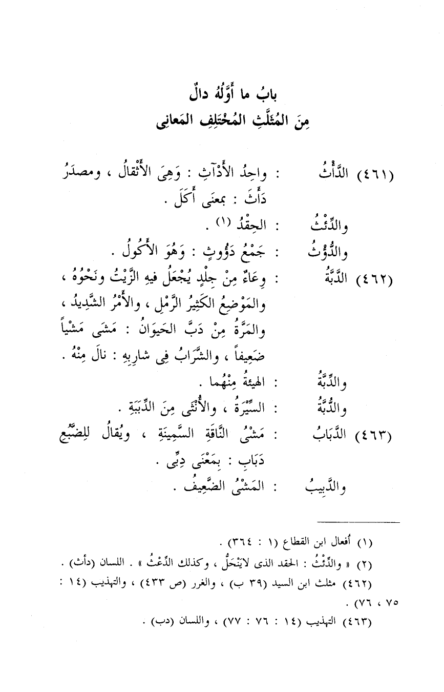 وعَاء من جلد يَجْعَل فِيهِ الزَّيْت وَنَحْوه، والموضع الْكثير الرمل، وَالْأَمر الشَّديد، والمرة من دب الْحَيَوَان: مَشى مشيا ضَعِيفا، وَالشرَاب فِي شَاربه: