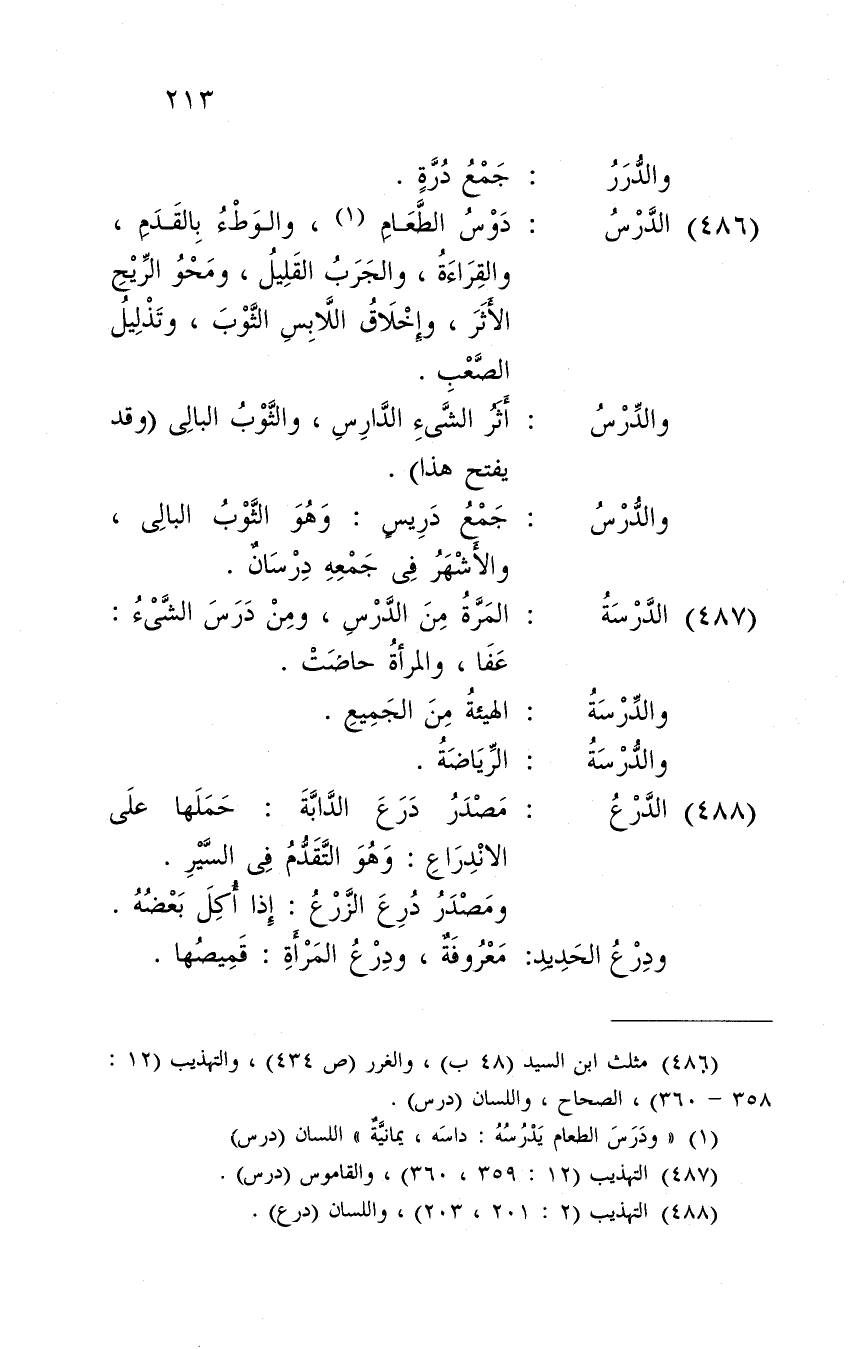 وَهُوَ الثَّوْب البالى، وَالْأَشْهر فى جمعه درسان.
