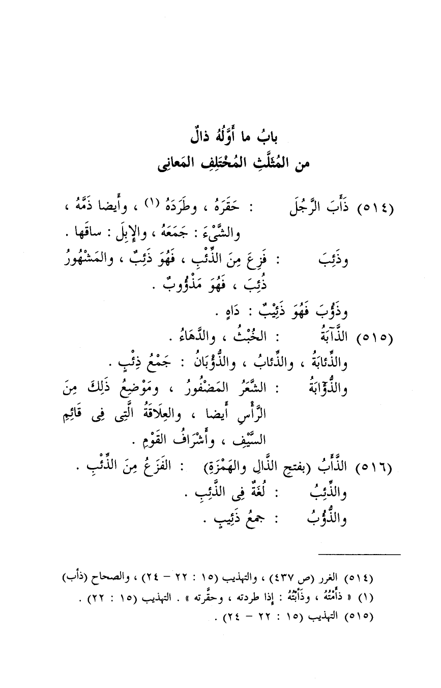 (516) الذأب (بِفَتْح الذَّال والهمزة) :