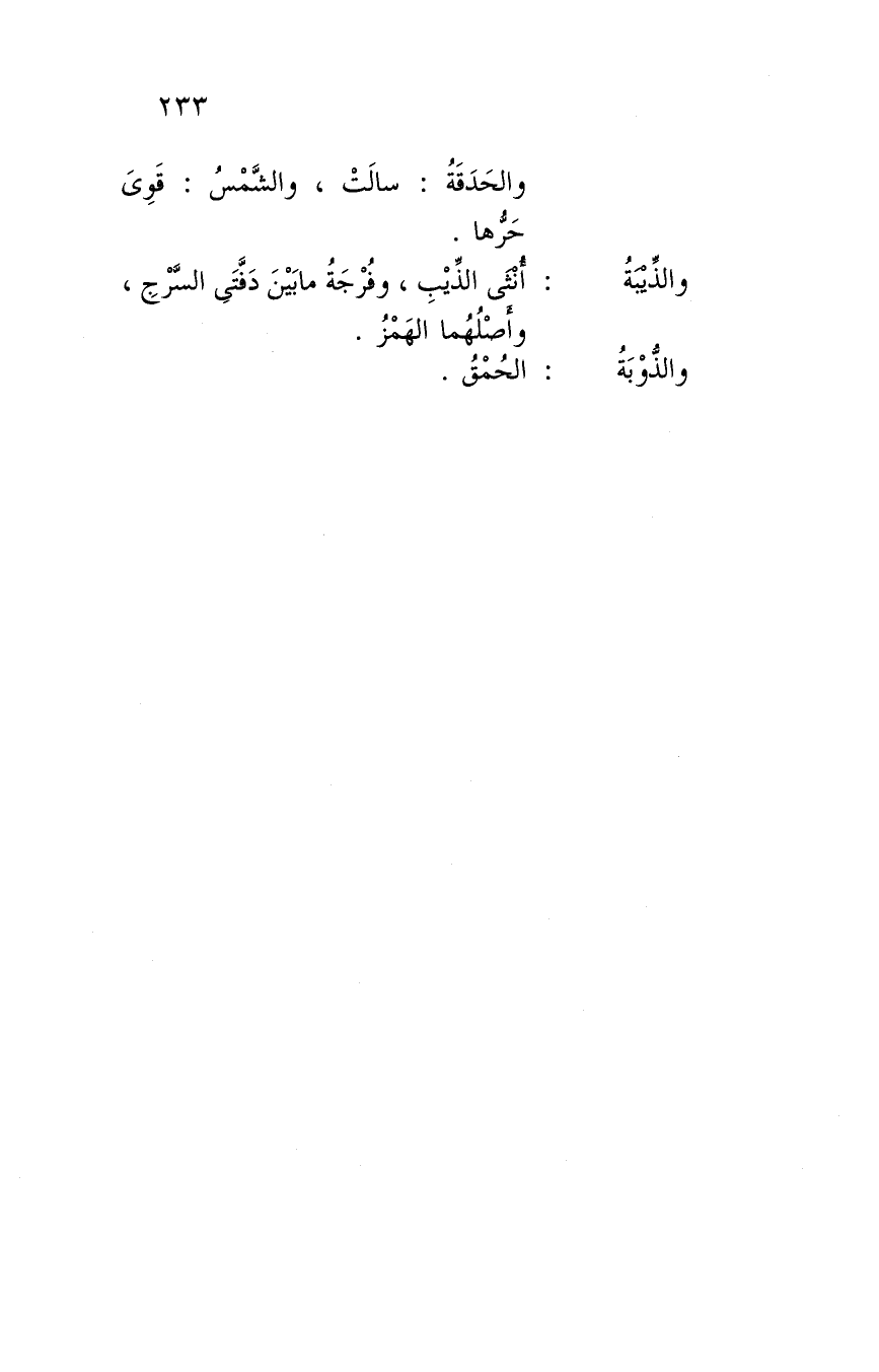 أُنْثَى الذيب، وفرجة مَا بَين دفتى السرج، وأصلهما الْهَمْز.