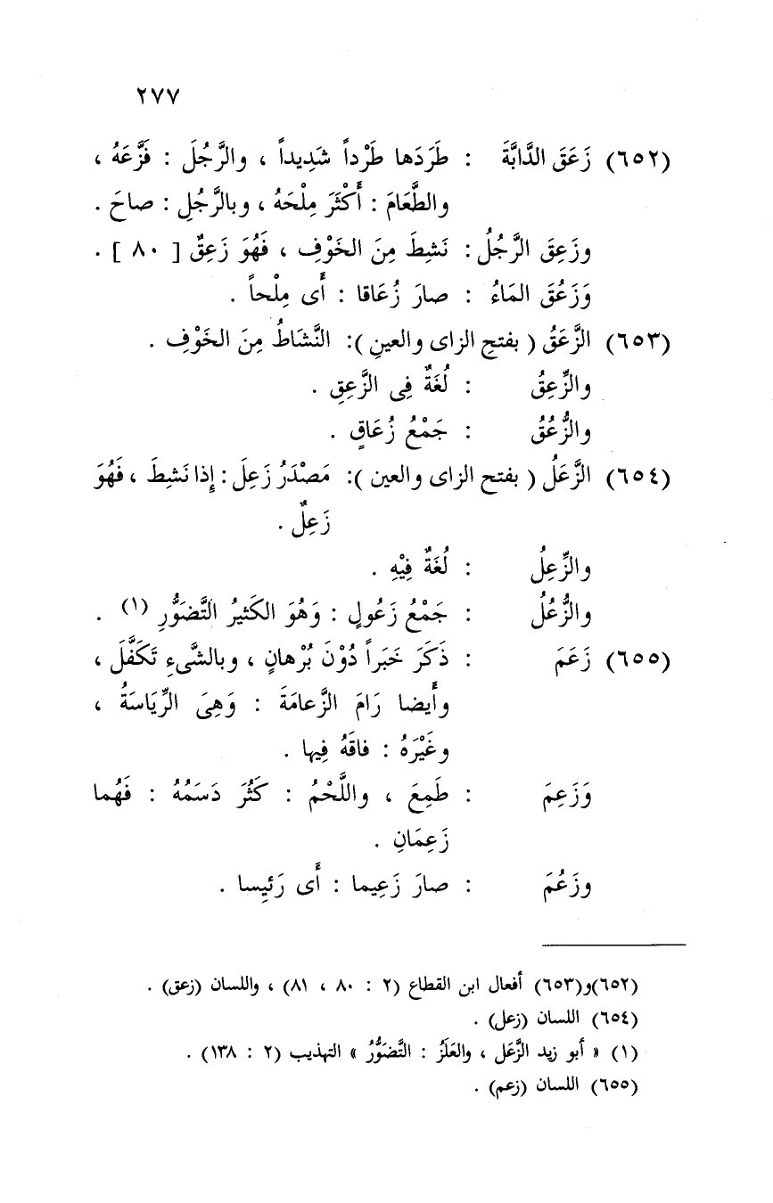 (654) الزعل (بِفَتْح الزاى وَالْعين) :