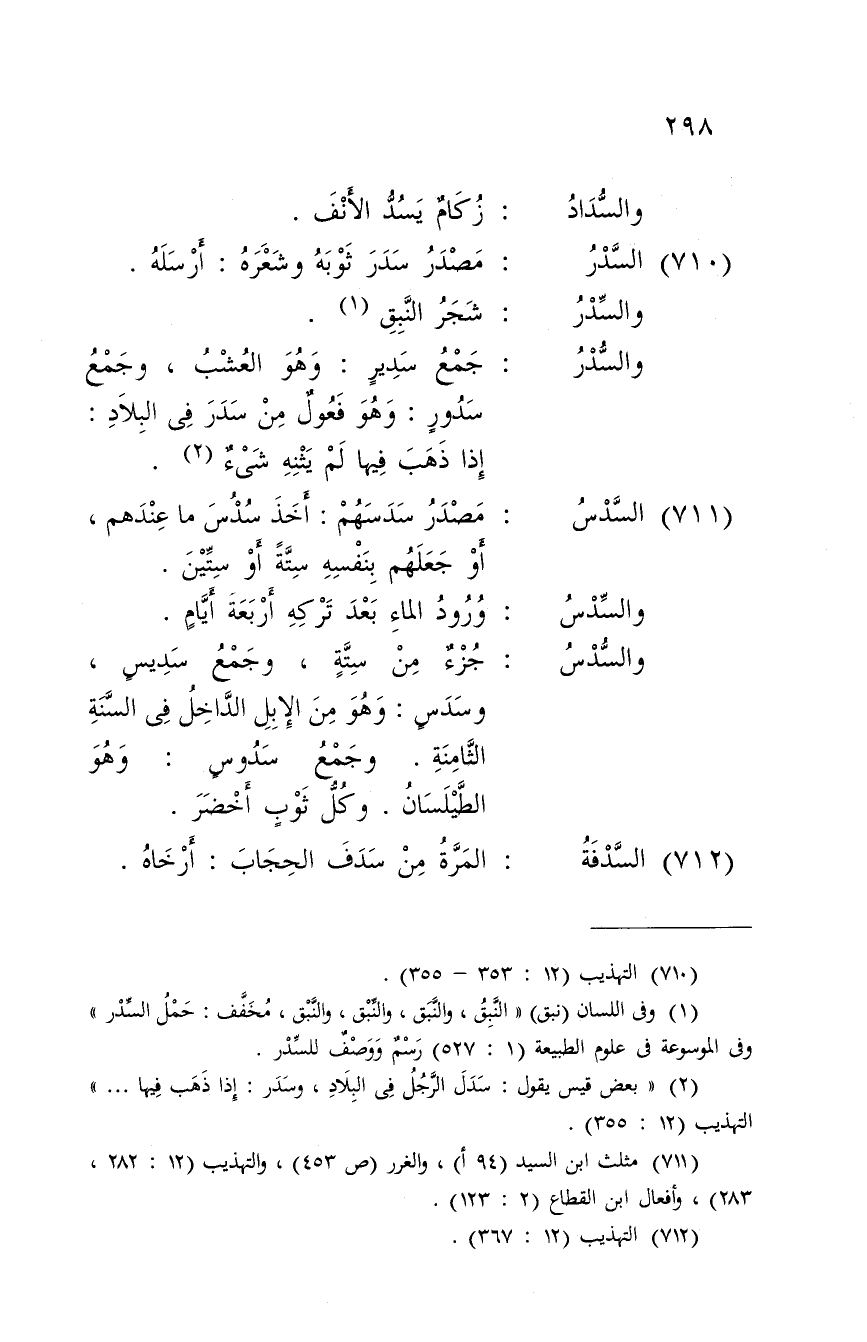 جمع سدير: وَهُوَ العشب، وَجمع سدور: وَهُوَ فعول من سدر فِي الْبِلَاد: إِذا ذهب فِيهَا لم يثنه شَيْء.