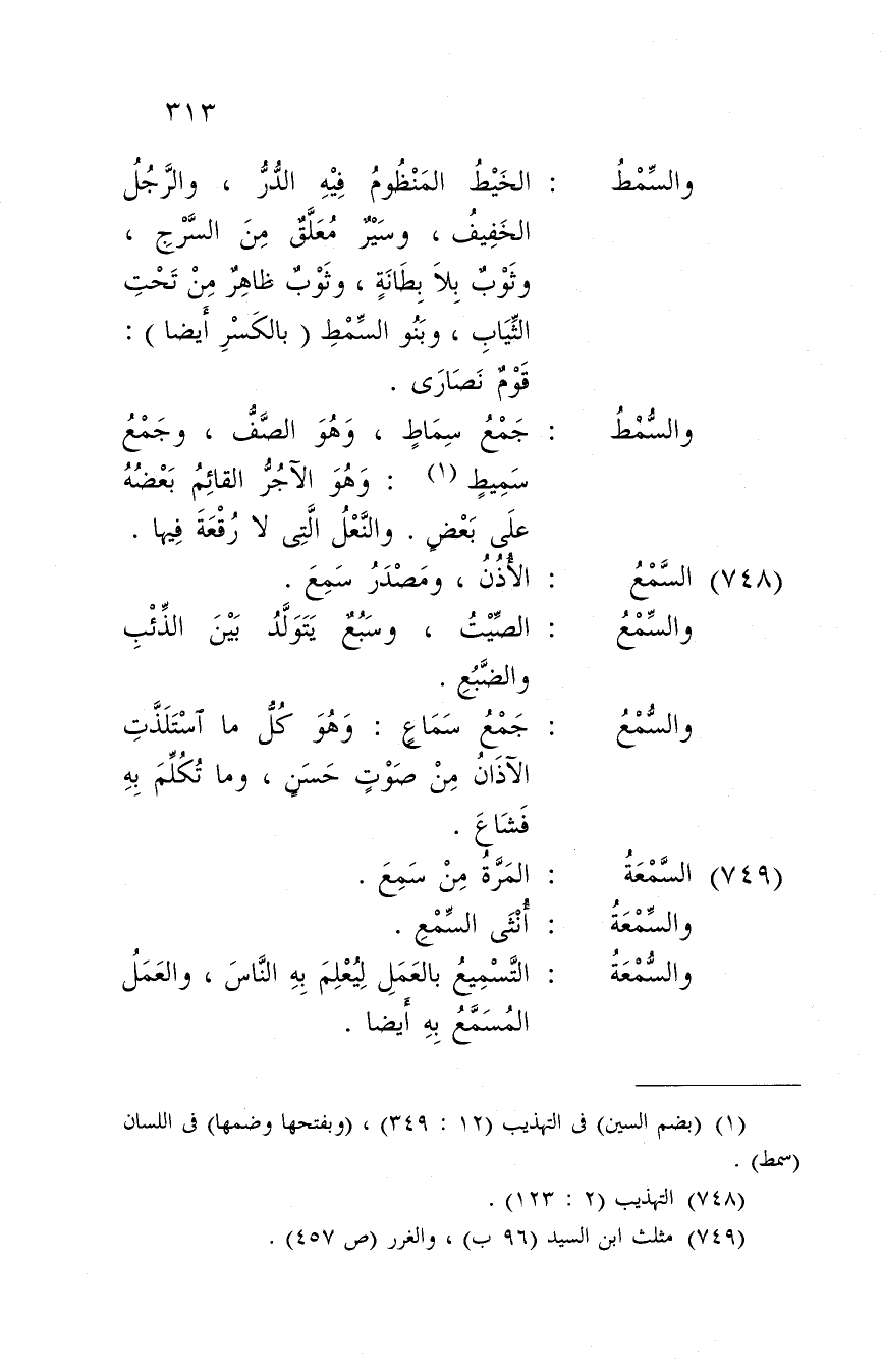جمع سماط، وَهُوَ الصَّفّ، وَجمع سميط: وَهُوَ الْآجر الْقَائِم بعضه على بعض، والنعل الَّتِي لَا رقْعَة فِيهَا.