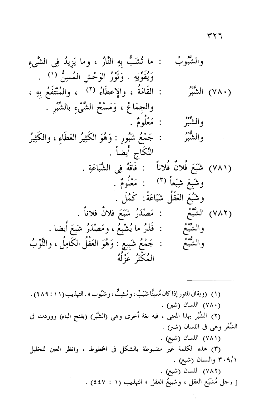 781 - شبع فلَان فلَانا: فاقه فِي الشباعة.