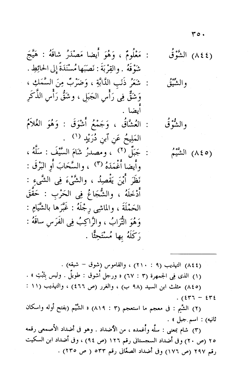 جبل، ومصدر شام السَّيْف: سَله، وَأَيْضًا أغمده، والسحاب أَو الْبَرْق: نظر أَيْن يقْصد، وَالشَّيْء فِي الشَّيْء: أدخلهُ، والشجاع فِي الْحَرْب: حقق الحملة، والماشي رجله: غبرها بالشيام: وَهُوَ التُّرَاب، والراكب فِي الْفرس سَاقه: ركله بهَا مستحثا.