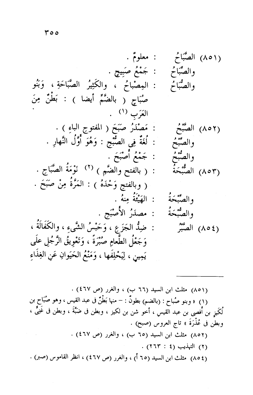 الْمِصْبَاح، وَالْكثير الصباحة، وَبَنُو صباح (بِالضَّمِّ أَيْضا) : بطن من الْعَرَب.