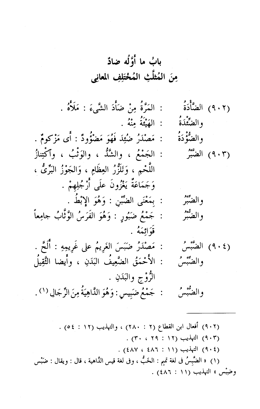 بَاب مَا أَوله ضاد من المثلث الْمُخْتَلف الْمعَانِي